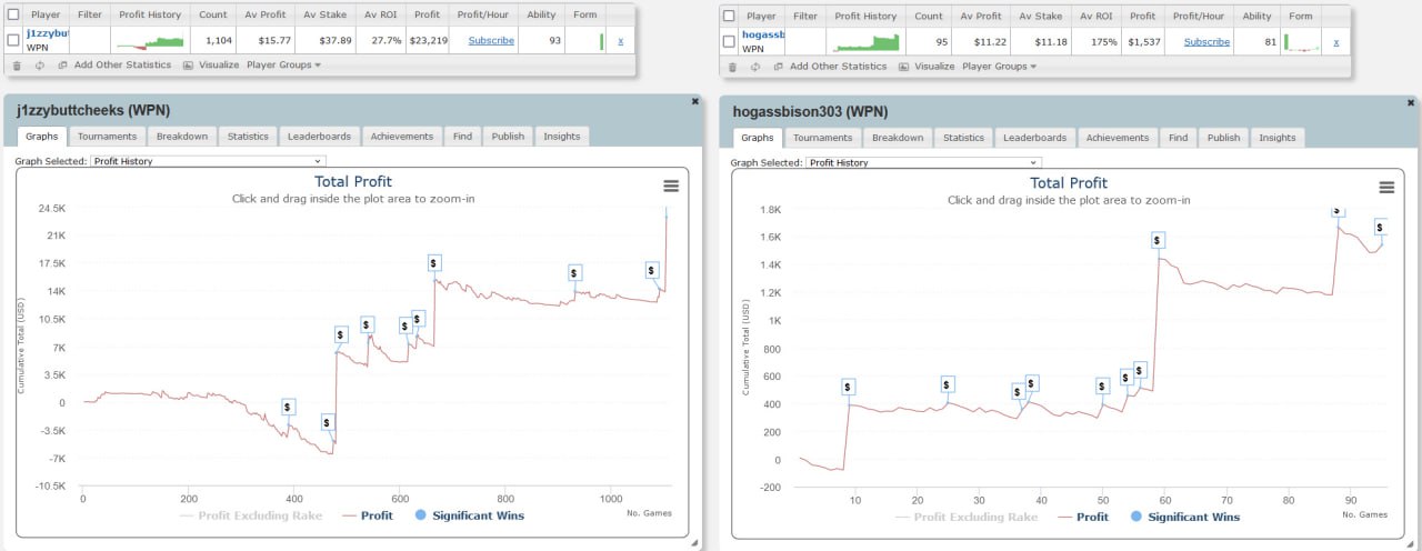 Актуальные графики обоих игроков на PokerKing очень похожи — для сравнения: