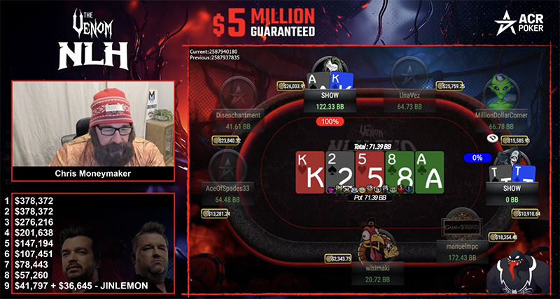 До Venom JINLEMON оформил $174K профита на PokerKing.