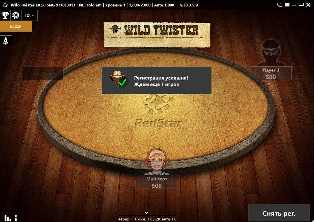 К вечеру ситуация меняется в положительную сторону — при посадке практически на любой бай-ин ожидание других игроков занимает не больше минуты, а в самых дешевых Wild Twister — олл-ин шутаутах с выигрышем билета в другой Twister — ждать и вовсе не приходится: стол, за которым уже есть двое игроков из трех, заполняется за 10 секунд.