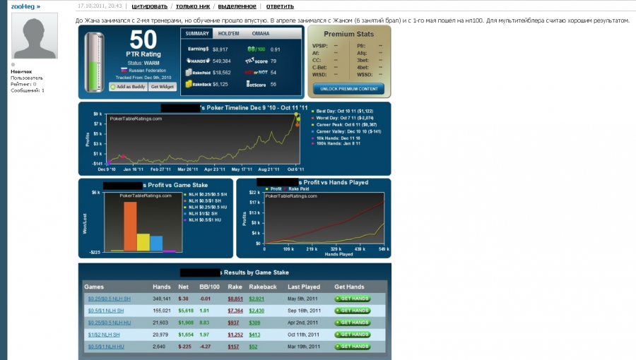 Самая неприятная ситуация, это когда вы играете в ноль, но при этом не делаете грубых ошибок в крупных банках. Так бывает, если вы проигрываете дeньги в мелких банках(например не ставя 2-й баррель в нужной ситуации) и при этом вам трудно оценить ошибка это была или нет. В этом видео я показываю, как с помощью фильтров в ХМе определить, где в мелких банках вы теряете дeньги и как с этим бороться. (Фильтры которые я использую в разборе, прилагаются к видео) 1-я часть cерии по поиску ошибок находится здесь http://www.pokeroff.ru/holdem/poisk-oshibok-s-pomoshhju-holdem-manager-video-540193