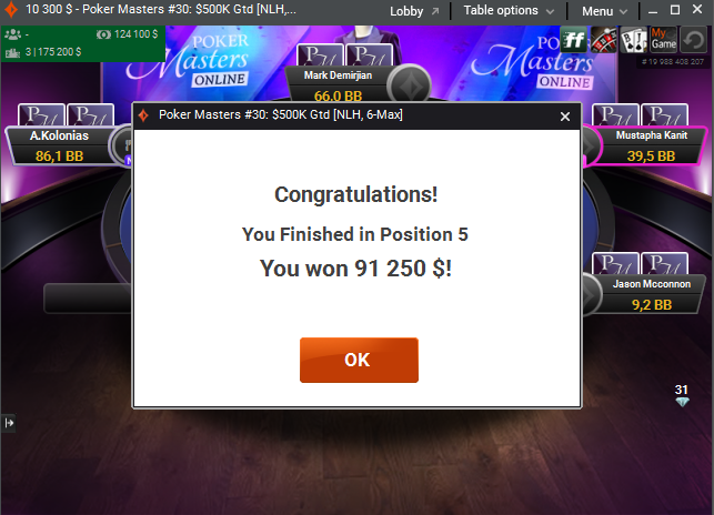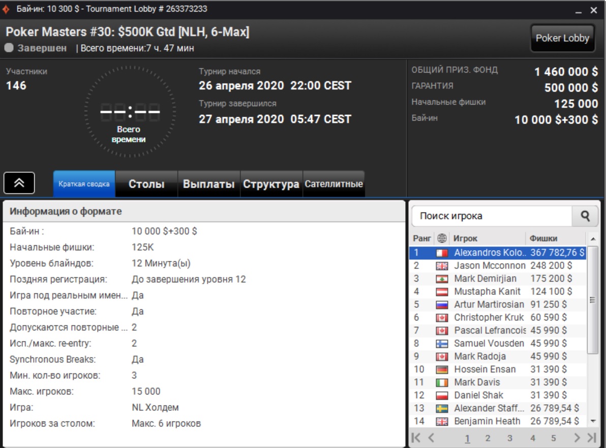 Однако, самые интересные для наших болельщиков события развернулись в заключительном ивенте всей серии. Единственный представитель России Артур «mararthur1» Мартиросян несколько последних дней шёл на первом месте и сохранял хорошие шансы на итоговую победу. Но в последний момент борьбу ему смог навязать легендарный греческий игрок Александрос Колониас.