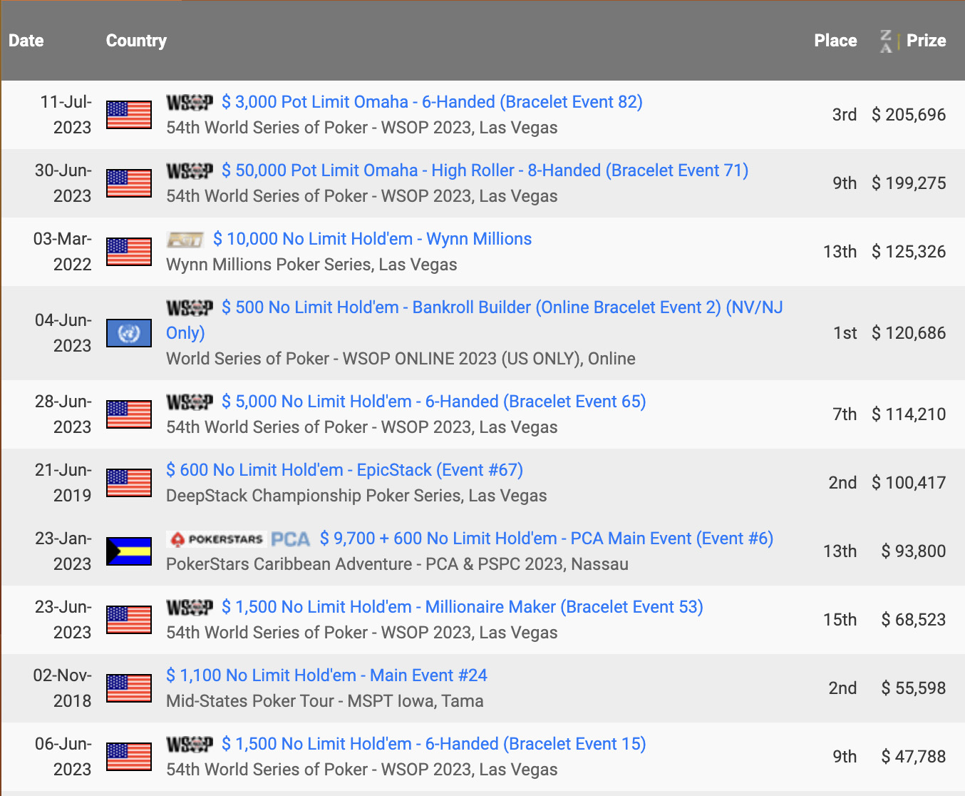 Всего Иэн Матакис оформил 22 ITM на WSOP 2023: 9 онлайн и 13 онлайн. Общая сумма призовых составила $886,1K.