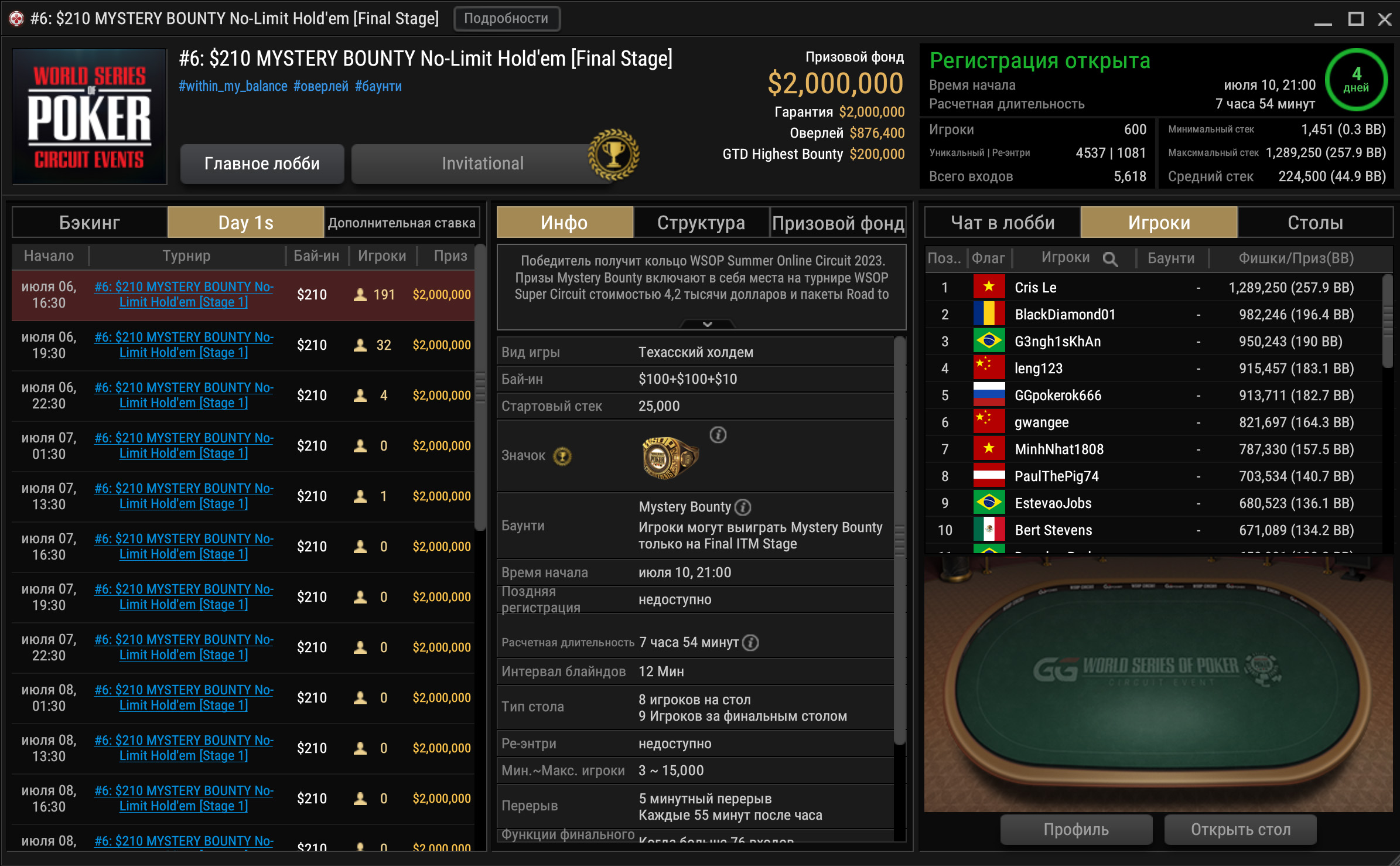ПокерОК: $210 Mystery Bounty $2M GTD и другие события WSOPC