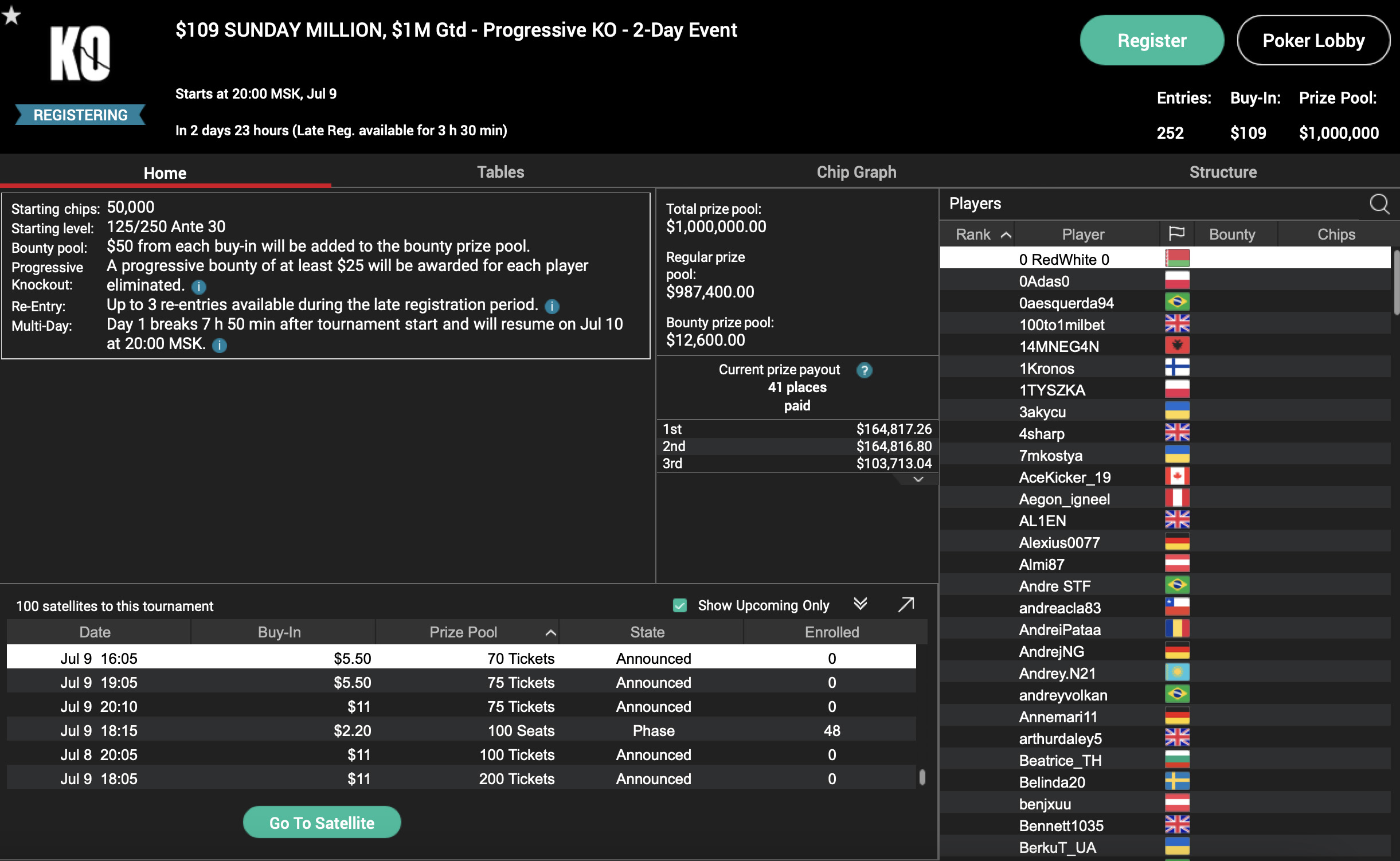 PokerStars: $109 Sunday Million (недоступно игрокам из РФ)