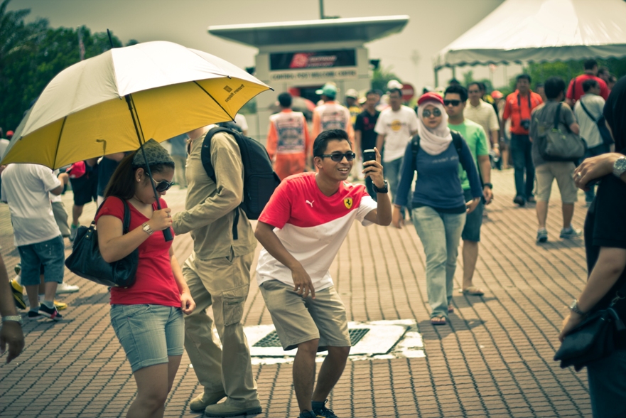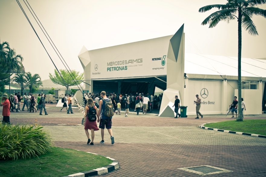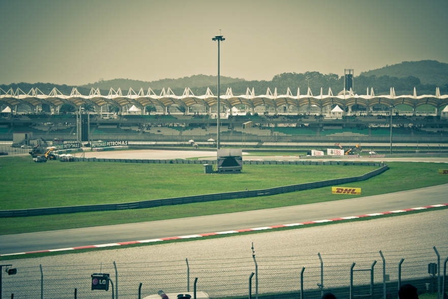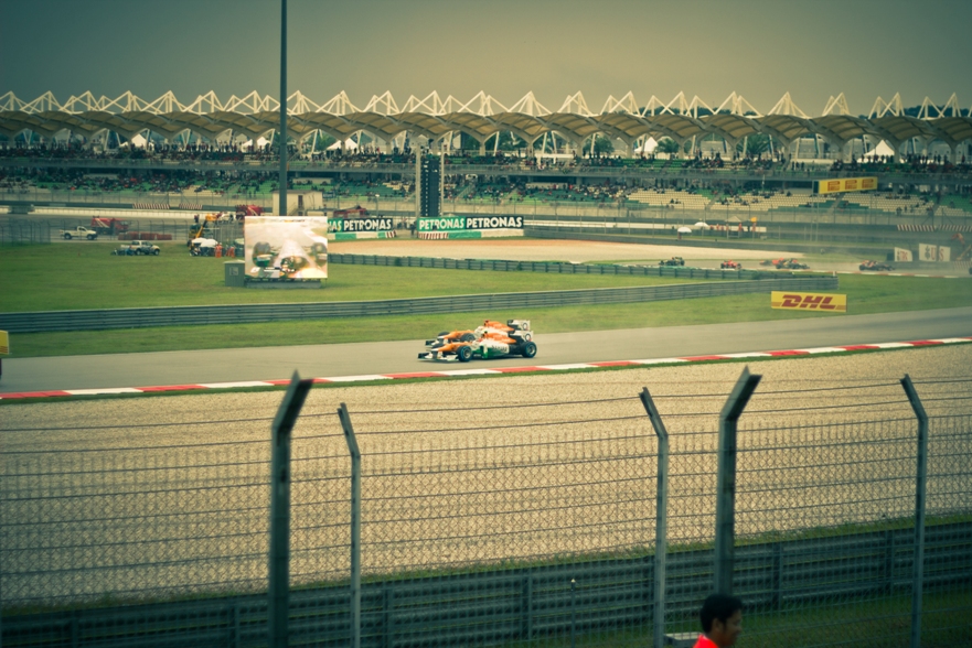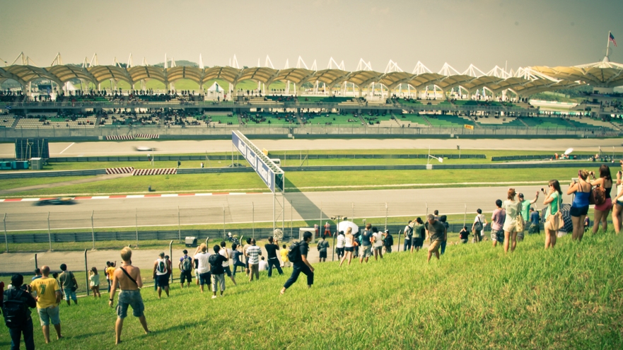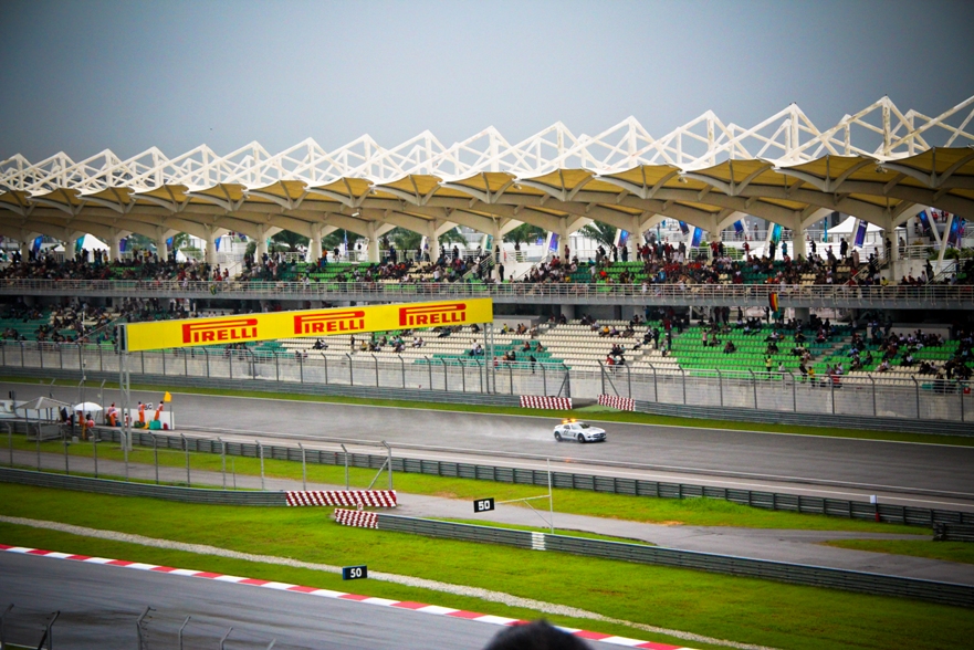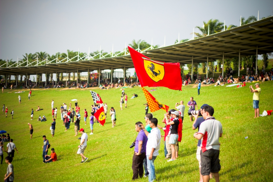 Наш сектор представлял собой склон, по верху которого шла аллея, как раз там располагались палатки с напитками и едой, чуть ниже был навес, ну а еще ниже поле, затем решетка и уже сама трасса. От нас хорошо было видно 9, 10 и 11 повороты, а также с 9 поворота хорошо видно длинную прямую, которая проходит вдоль main grandstand.
