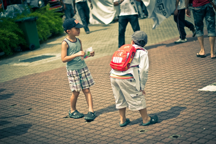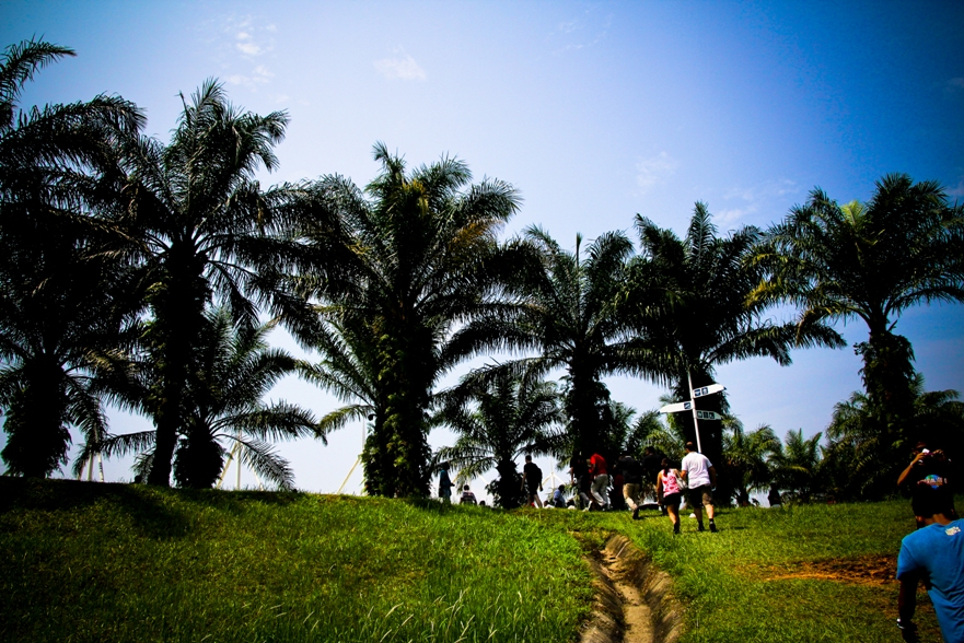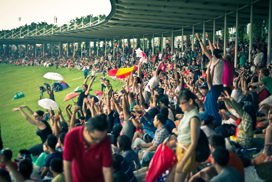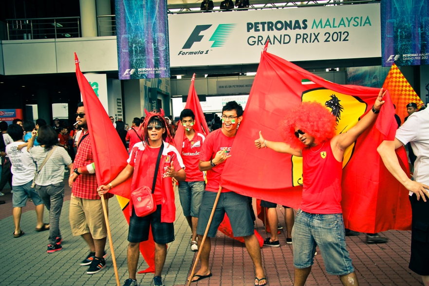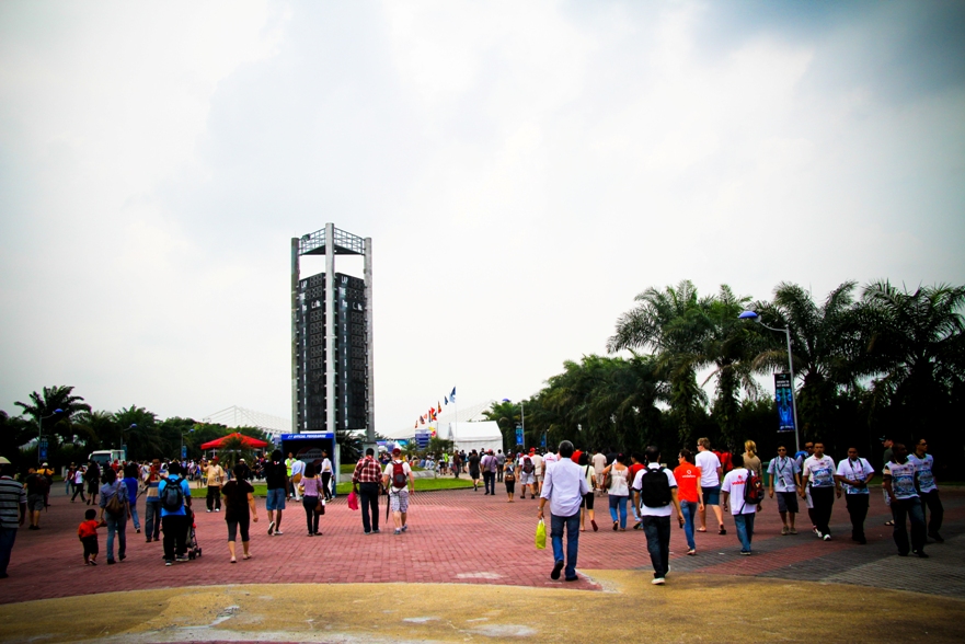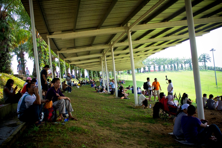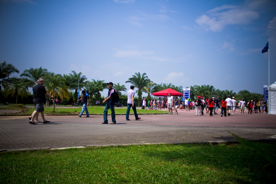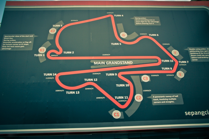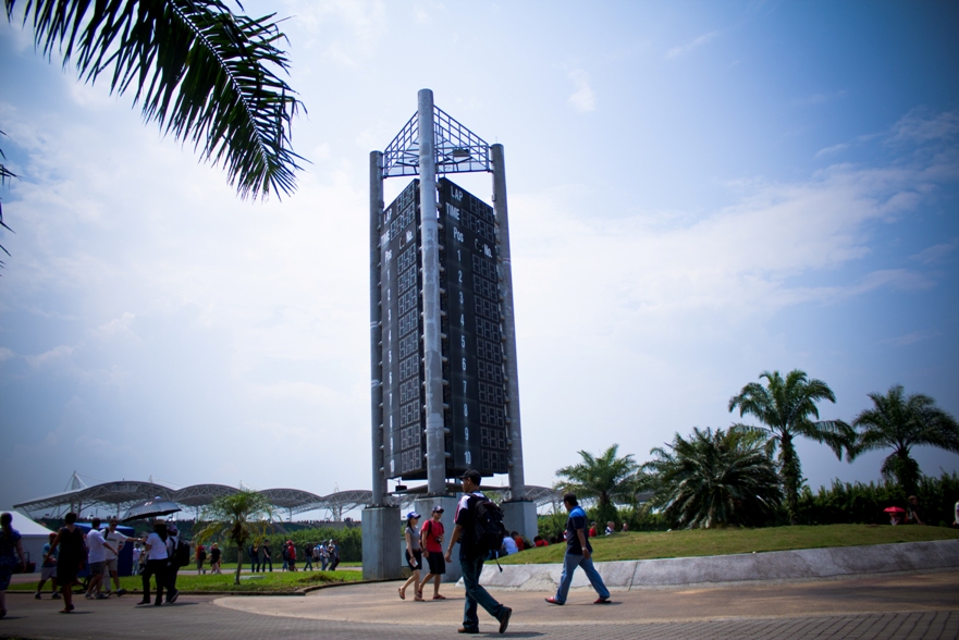 Наши места были в зоне С2, как видите по карте нужно немного проехать на автобусе от центрального входа. Но на карте не видно, что сначала нужно дождаться автобуса, потом в приплюснутом состоянии следить за тем, чтоб не проехать свою высадку, так как водила, похоже и сам особо не разбирается в остановках, поэтому приходится смотреть на еле заметные таблички с циферками. Также на карте не видно, что наша трибуна это холм и нужно совершить пешее поломничество к вершине этой святыни. Ну а там вас с распростертыми объятиями ждут веселые малазийские монстры, которые требуют штрихкода и питаются бутылками с водой.