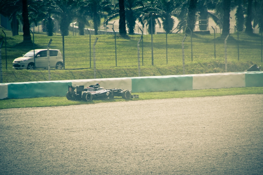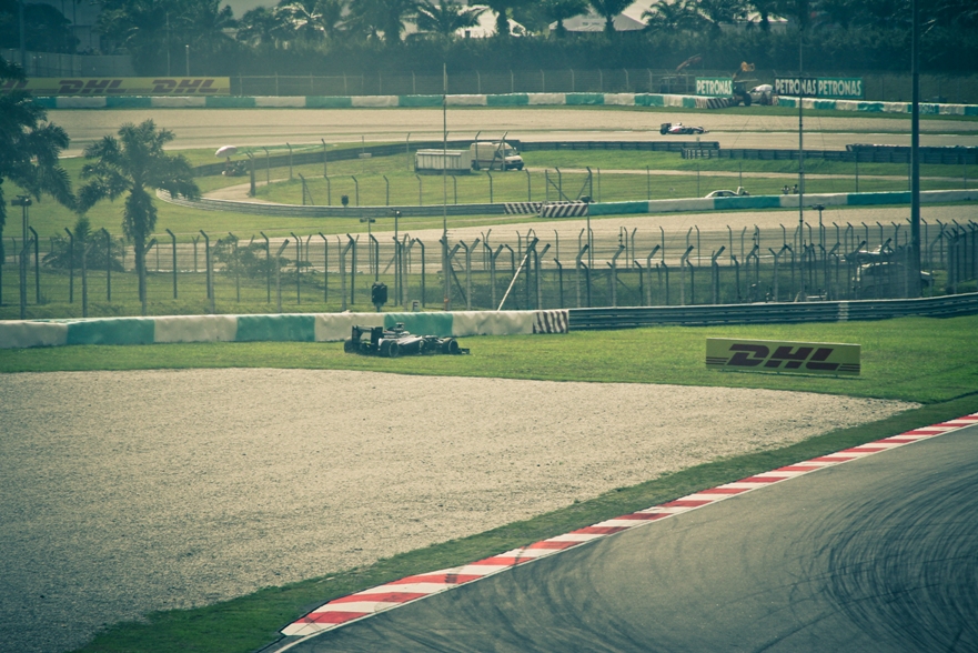И вот наконец-то послышался рёв моторов, где-то вдали, судя по монитору, машины начали выезжать на разогрев. Я и не знал, что перед квалификацией кроме третьей практики есть еще небольшой разогревочный проезд. Хотя и выехали на него буквально 3-5 машин. Ну а потом уже стартовала квалификация Гран при Малайзии формулы один 2012 года!