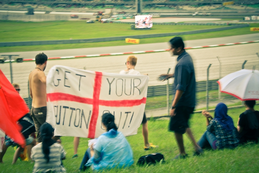 То и дело пробегали болельщики с надписями в поддержку баттона и райконенна.