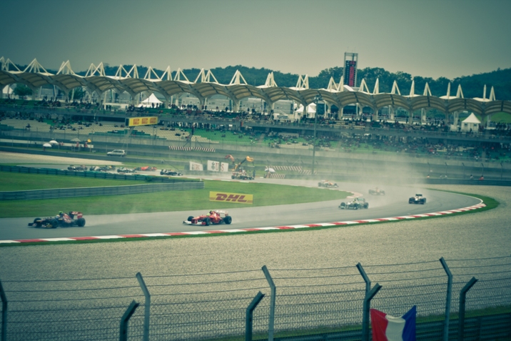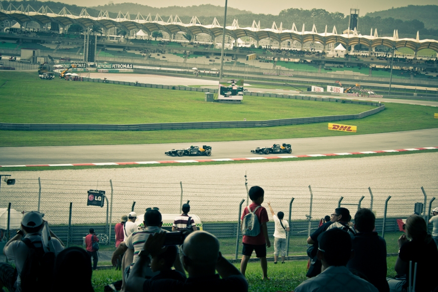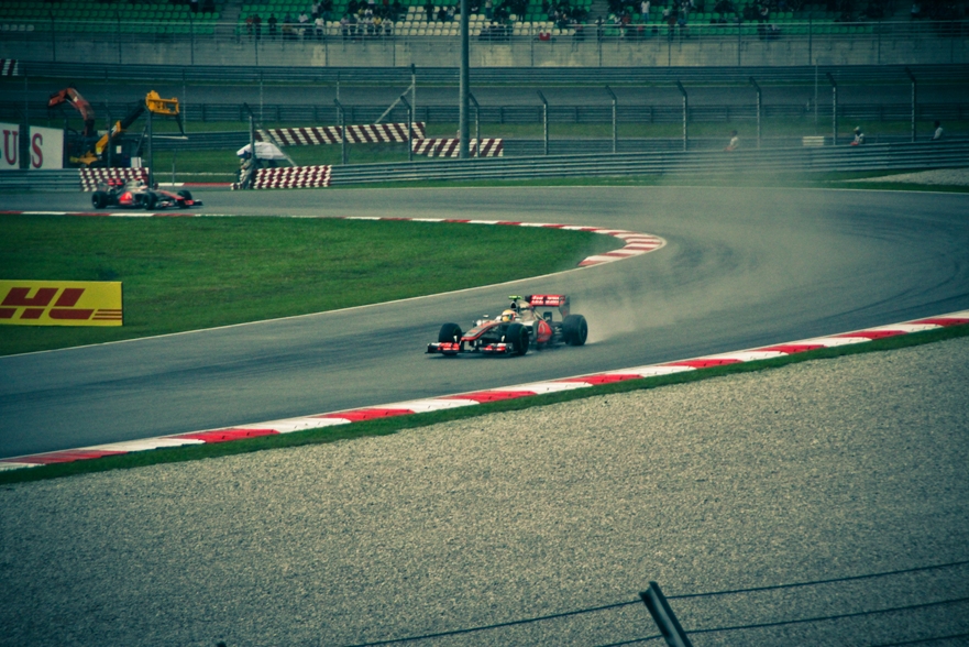 Рев был уже громче и машины одна за другой начали выезжать и проноситься мимо нас. Наконец-то услышал этот чудный звук в живую. Вот и кэйтеремы проносятся мимо, и мерседесы, феррари, ред булл. Чудные мгновения. Но без результатов эта картинка в итоге надоедает :(