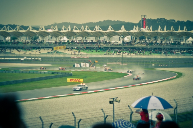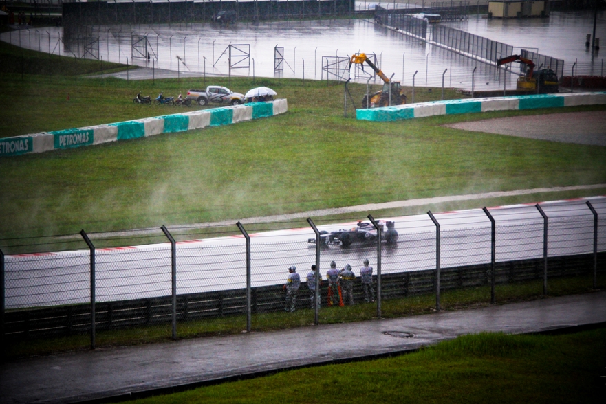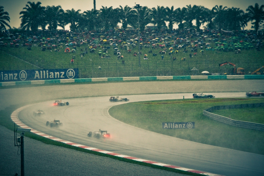 Ммм… может намечается дождевая гонка?) Надо заметить, по телевизору я любил смотреть дождевые гонки, так как разница между командами нивелируется и в очки могут заехать даже аутсайдеры. Да и происходит много сходов, вылетов в гравий. На питлейне пускают корбалики в случае остановки гонки, в общем много фана.