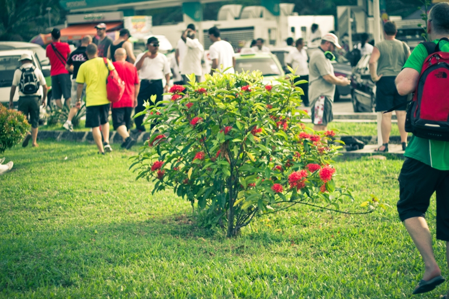 При входе вас обыскивают, дальше располагается большое здание с аркой, слева в этом здании не знаю что находилось, а вот справа были билетные кассы, там же стоял единственный желтый банкомат на всю трассу с огромными очередями и боченок с бесплатной водой. Пока Витя пытался разжиться дeньгами, а я утолил жажду и вышел на улицу фоткать, надо сказать в малайзии не просто жарко, но еще и влажность выше, так что порой как в парилке.