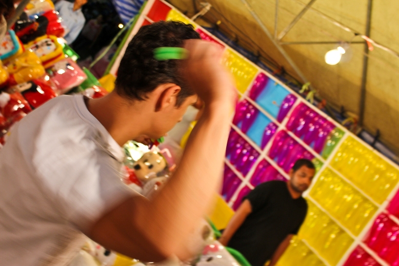 Там были собраны различные конкурсы, в которых можно выиграть подарки. Можешь либо лопнуть 5 шаров 10ю дротиками, либо засунуть руку в аквариум с шариками и вытащив один, тебе его лопают, доставая номер. Рядом пронумерованные подарки, таким образом Вова выиграл открывашку для пива, Равиль расческу.