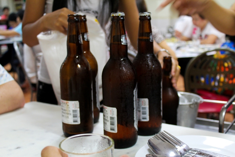 Там стояли две симпотных тайки и проводили какую-то акцию, увидя в нас потенциальных покупателей подскочили к нам и сказали, что если купим 5 бутылок определенного пива, получим футболку с их логотипом бесплатно. Беспроигрышный вариант, берем.