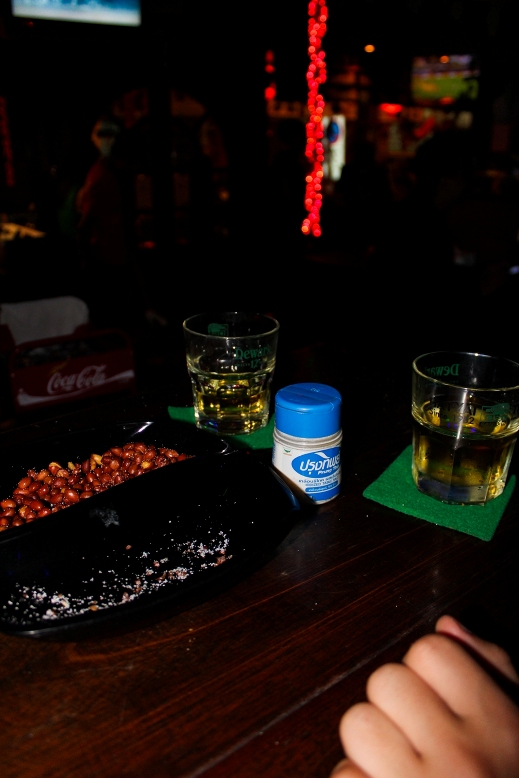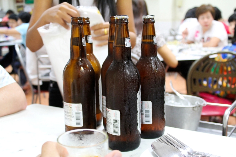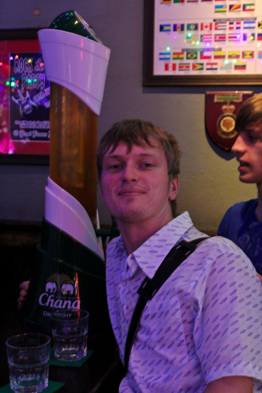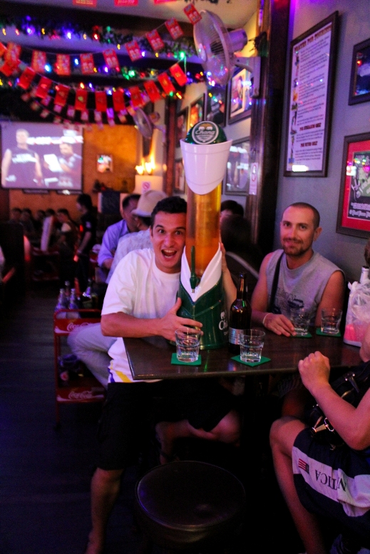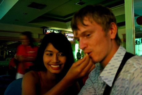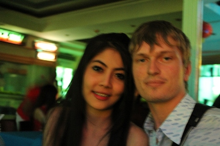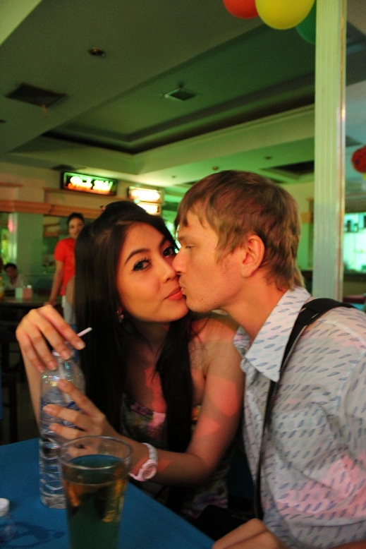 Ребята все заказывали пива, а я решил притормозить с выпивкой, тайка заметила это и стала делиться со мной водой, парни, конечно требовали выпивать вместе с ними, тогда моей тайкой был придуман хитрый план, по переливанию пива из моего стакана в бокал Зарубы, извини, Женя :)