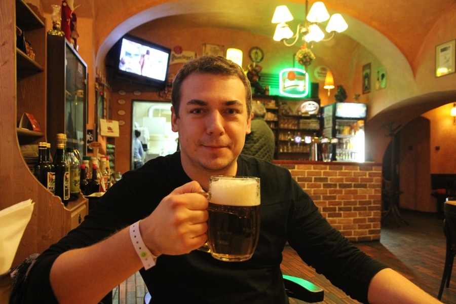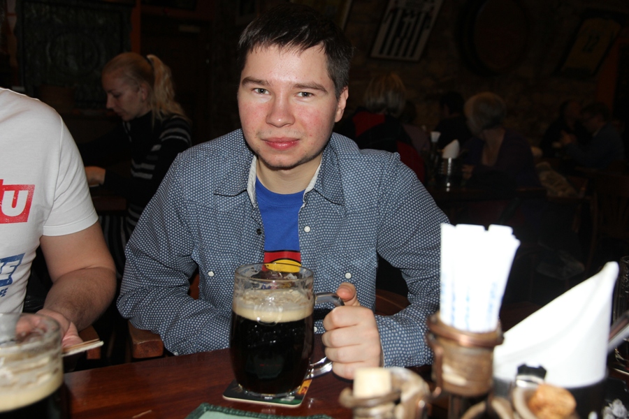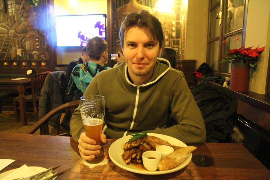 Успех любой поездки можно смело мерить компанией с которой вы путешествуете. Моими спутниками оказались отличные ребята. Вот Максим Streltcoff с темным козлом в руках.