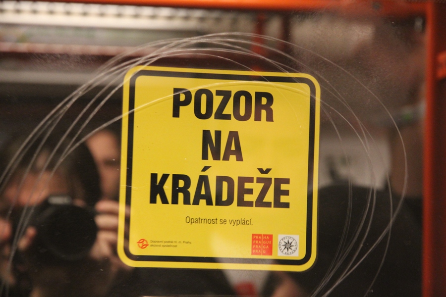 Pozor по-чешски "внимание". На фотографии наклейка на двери в метро с призывом остерегаться карманников. Я ни одного не встретил, хотя телефона и портмоне у меня больше нет.