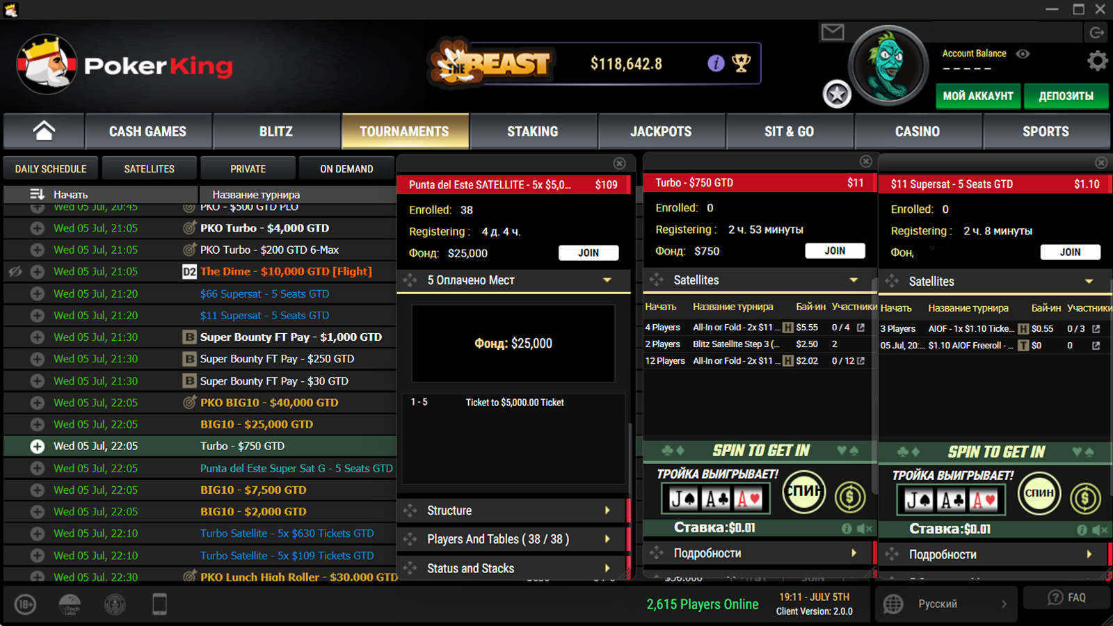 Развернутого турнирного лобби, которое открывается отдельным большим окном для каждого турнира, больше нет — вся информация отображается в маленьких вертикальных окошках с вкладками, которые можно увеличить только по вертикали.