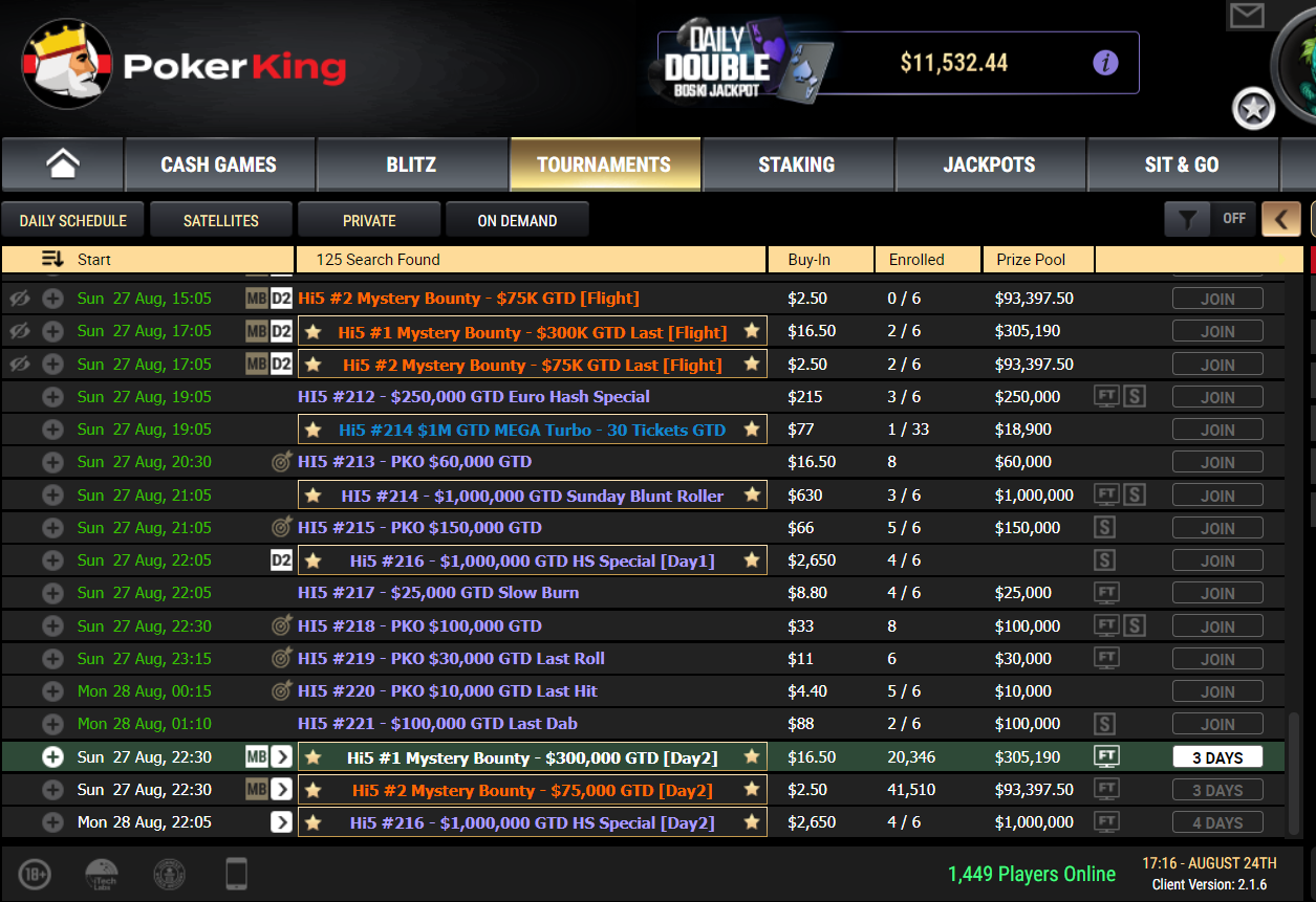- $16.50 Hi5 #1 Mystery Bounty $300K Gtd — топовый баунти $30K;