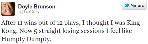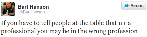 P.S.: По просьбам трудящихся предлагаю вам в комментариях озвучить имена тех зарубежных товарищей, чьи твиты вам было бы интересно почитать (в пepевoде на русский, разумеется), а также написать собственные вопросы, которые вы хотели бы задать этим людям. Если вопросы будут действительно интересные - я попробую задать их вашим "кумирам", а затем опубликую их в следующих выпусках рубрики "Покерная неделя в twitter". Спасибо за внимание.