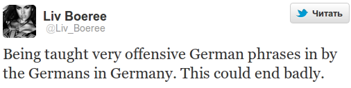 «В данную минуту немцы учат меня довольно грубым выражениям на своём языке. В Германии. Ох, чует моё сердце, плохо это может закончиться.»