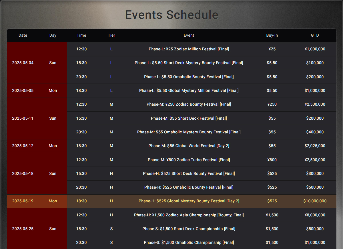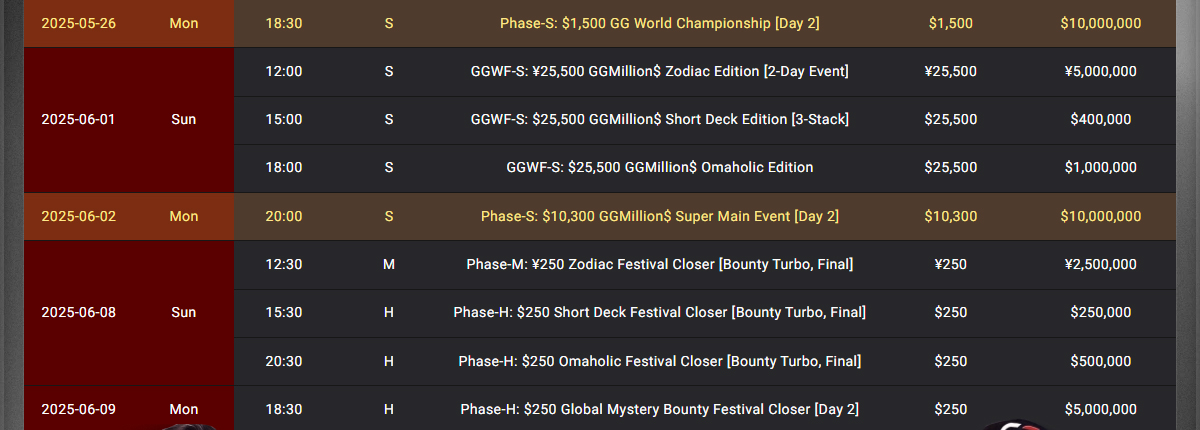 Как было сказано выше, в 2025 году на GG World Festival игроков ждут сразу 20 мультифлайтов и фазовых турниров с бай-инами от ¥25 (~$3) до $10,300.