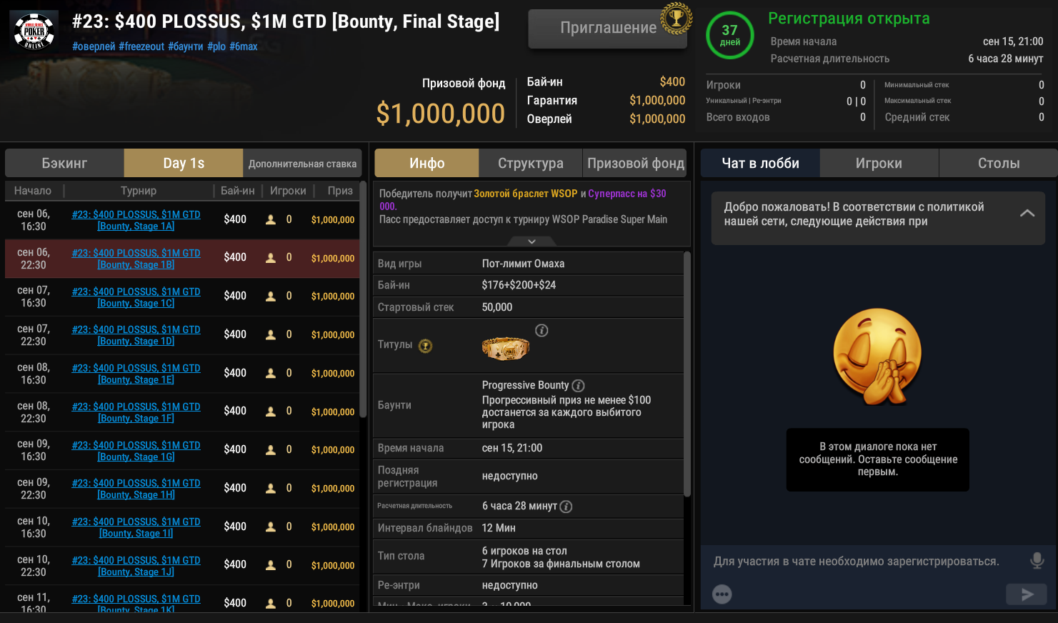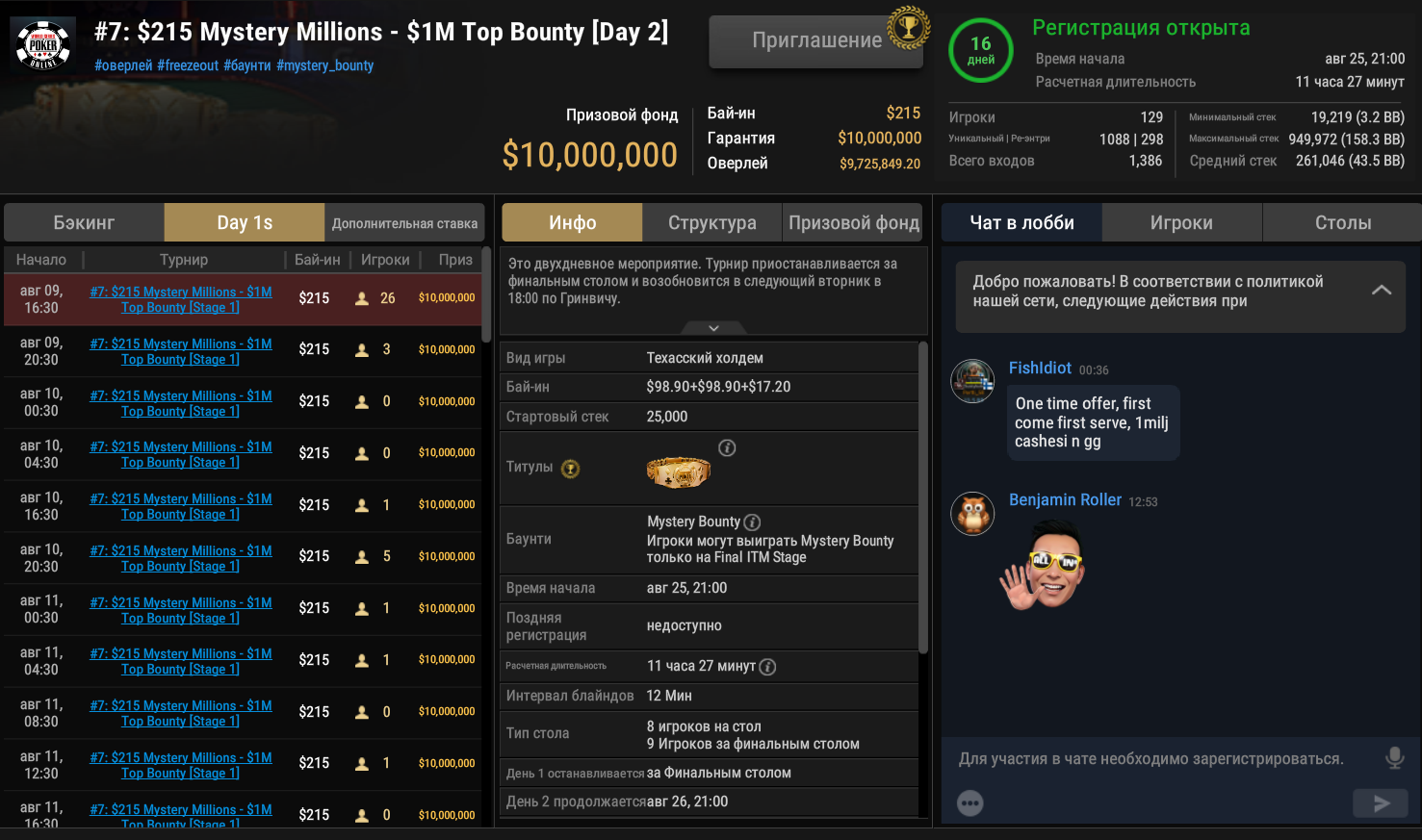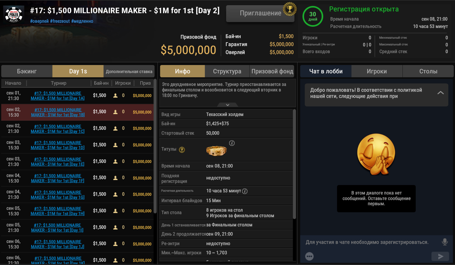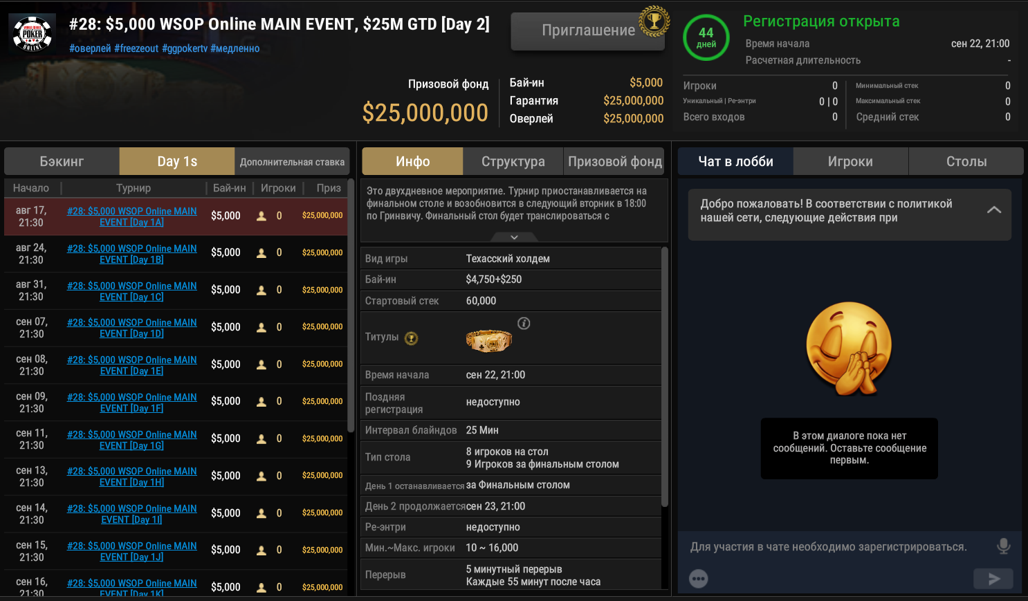 - Гарантия Main Event снова равна $25,000,000 при бай-ине в $5,000.