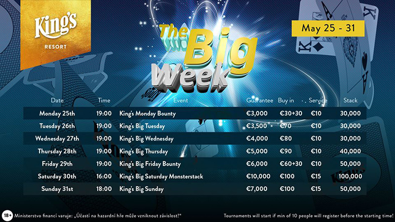 Единственным местом на Земле, где как птица Феникс воскрешаются офлайн турниры, является King’s Casino в Розвадове. С 25 мая по 31 мая здесь пройдёт The Big Week с бай-инами от €60 до €100. Судя по размеру гарантий, Леон Цукерник ориентируется собрать от 50 до 100 игроков. Как вы считаете, удастся ли ему это? И готовы ли вы уже сегодня играть в крупных турнирах офлайн?