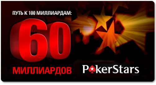 Шесть месяцев назад, крупнейшая онлайн комната покера PokerStars отметила 50-миллиардную раздачу. В честь этого события комната разыграла миллион долларов между игроками различных уровней. Настала пора для празднования 60-миллиардной раздачи и игроков вновь ждут шикарные призы!