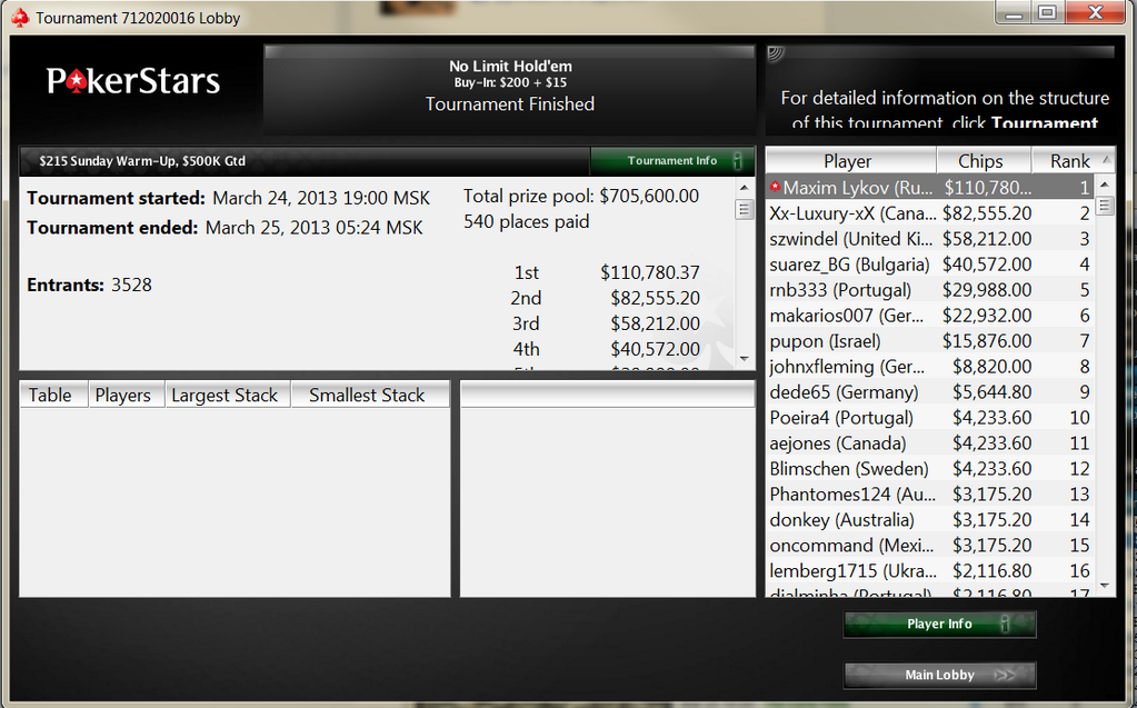 За баталиями MicroMillions немного в тень отошли традиционные воскресные MTT-турниры. Но повод вспомнить о них россиянам дал Макс Лыков, который в блестящем стиле выиграл Sunday Warm Up и заработал $ 110 780 призовых.