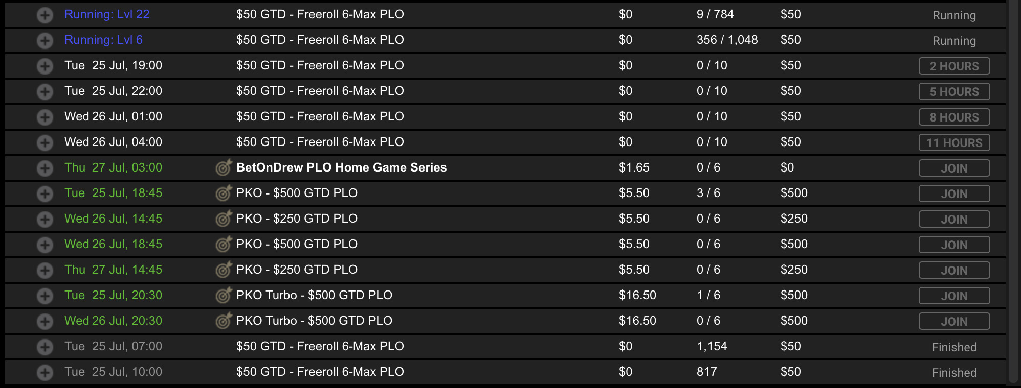 Какие турниры по PLO можно найти в онлайне