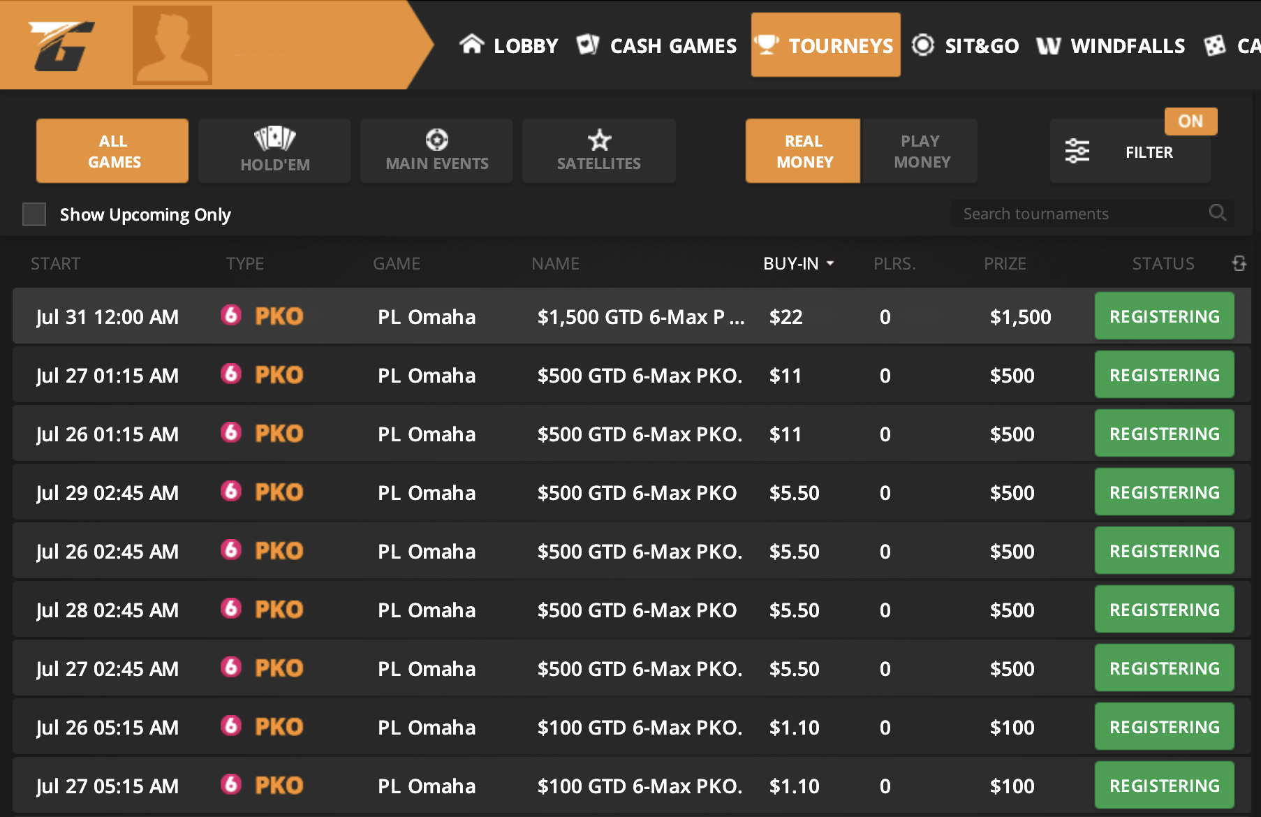 На PokerKing нет крупных турниров по Омахе в обычное время.