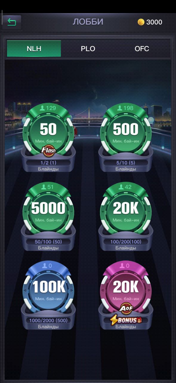 В клубах Безлимитный Холдем, Пот-лимит Омаха (4 и 5-карточная) и Ананас.