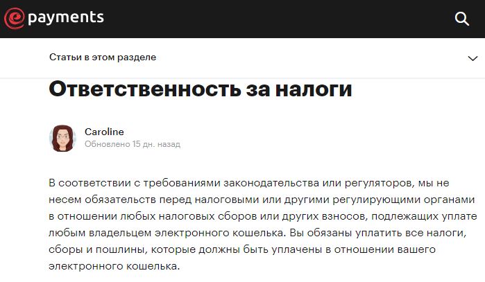 Мы задали вопрос об этой ситуации службе поддержки ePayments через тикеты, однако пока не получили ответа. Но в разделе «Наиболее часто задаваемые вопросы» есть похожая тема: