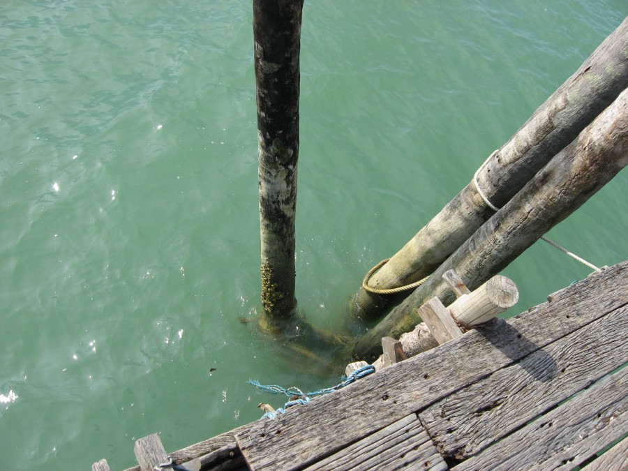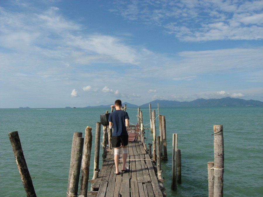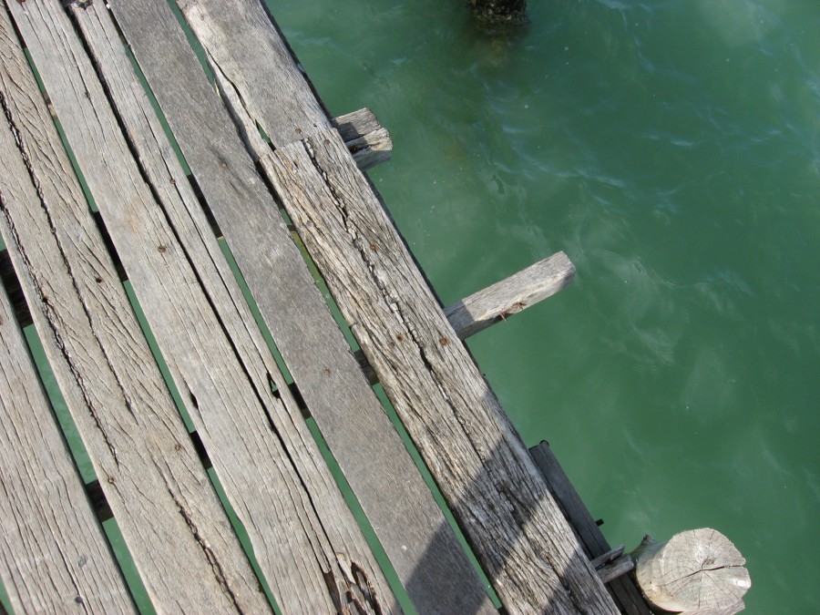 Припарковали байки и пошли искать место назначения. Прямо перед нами была была заброшенная пристань и мы конечно не смогли пройти мимо. Все это строение выглядит обветшало и ненадежно, но от того же придает особый шарм этому месту. И с этого мостика открываются неплохие виды на пляж и берег.