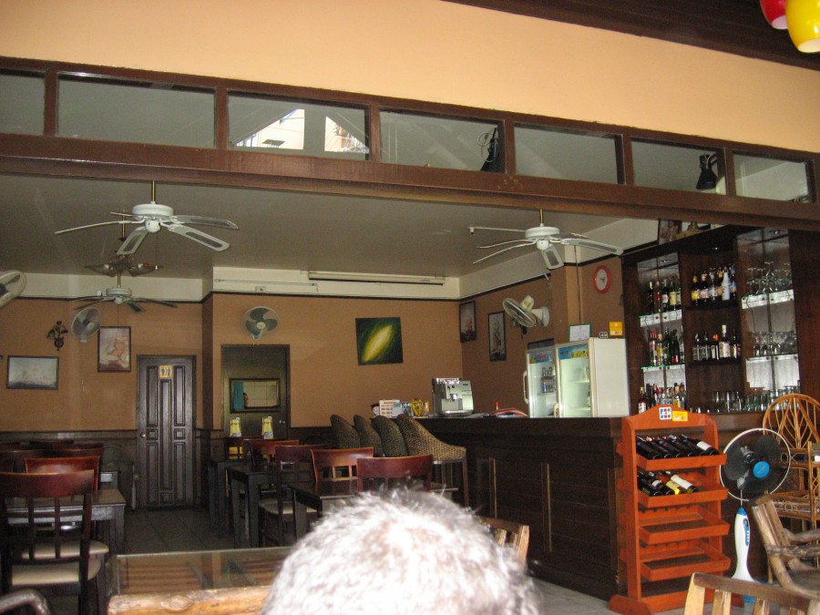 Перейдя дорогу и зайдя в ресторанчик, мы увидели достаточно красивую обстановку, красивые диванчики, удобные места, офигенные виды на море, в общем круто было бы тут присесть и выпить пару коктейлей. Но нас ждал жесткий облом, бухло было халявным с 10 до 11 ( ну кто к ним приедет в такую рань?!).