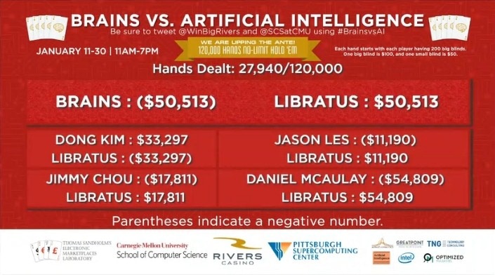 Но поражение только подогрело интерес ученых – 2017-ый год начался с нового вызова от команды разработчиков. На этот раз Томас Сандхольм презентовал своё новое детище, бота Libratus. Вызов приняла команда топовых NLHU-профессионалов в составе Джимми «dougiedan678» Чоу, Донг «DongerKim» Ким, Джейсон «PremiumWhey» Лес и Даниэль «ForTheSwarm» Мак’Олэй.