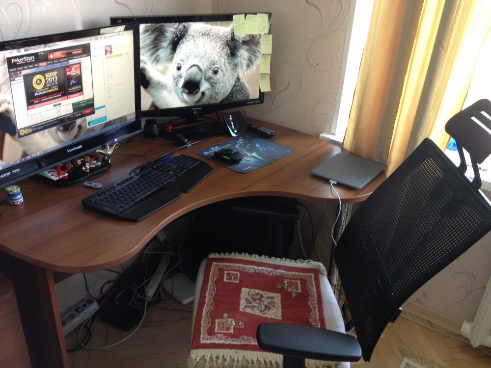 И снова здравствуйте. Покерофф рад поприветствовать вас в очередном выпуске нашей относительно новой рубрики с говорящим названием "Рабочее место покериста", в рамках которой мы вторгаемся в рабочую зону профессиональных игроков в онлайн-покер и показываем вам, в каких именно условиях они гриндят на свой хлеб с маслом.