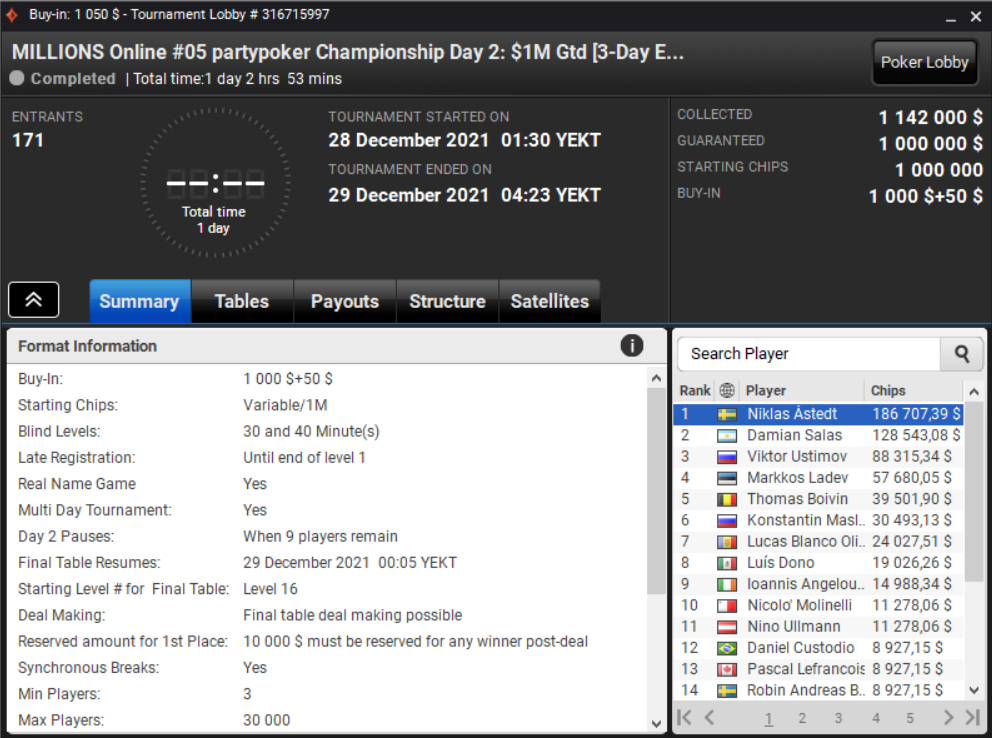 Очередная победа Никласа «Lena900» Астедта — partypoker Championship