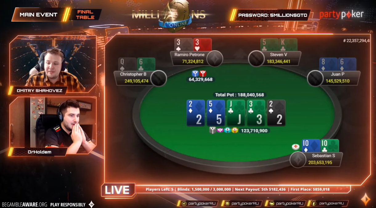 Регуляр высоких лимитов Рамиро Петроне обновил бесткеш, победив в Главном событии partypoker MILLIONS Online. В сегодняшнем материале расскажем о необычной финалке Main Event, а также о других крупных победах известных регуляров в эти выходные.