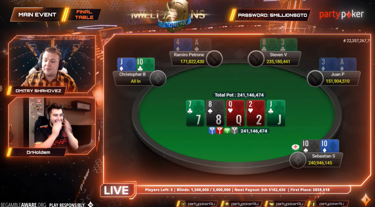 Доигровка проходила в прямом эфире с русскими комментариями Дмитрия Шахова и стримера DrHoldem. Для определения победителя понадобилось чуть более пяти часов.
