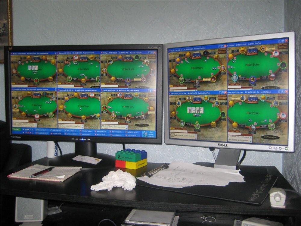 На самом деле это не так. Всё зависит от того, какое расположение столов на мониторе вам наиболее удобно. Вы можете возразить: «Для мультитейблинга нужен большой монитор, чтобы столы не перекрывали друг друга», но это уже совсем другая история. В таком случае вам действительно лучше подойдёт большой монитор с диагональю 24 или 30 дюймов и разрешением 1920×1200 или 2560×1600, который вы сможете замостить максимальным числом столов без наложения. Однако, в зависимости от программного обеспечения покер-рума, в котором вы играете, вы вполне можете открывать большое число столов так, чтобы они полностью перекрывали друг друга (стопкой). В этом случае вам не понадобится дополнительной площади на рабочем столе. Однако, если вы решили, что вам нужно купить новый монитор для покера, то сперва ознакомьтесь с руководством по покупке покерного монитора.