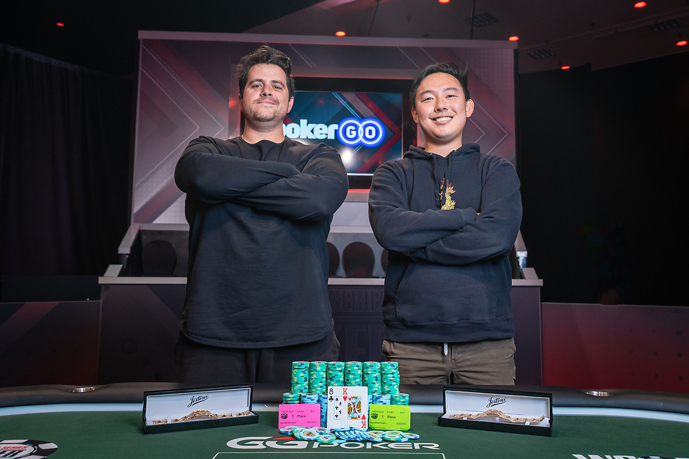 Завершает наш мини-отчёт милая история из $1K Tag Team. Если в 2022 году победу в нём праздновали не слишком близко знакомые в то время Патрик Леонард и Эспен Йорстад, то в 2023 браслеты забрали давние друзья Майкл Савакинас и Сатоши Танака.
