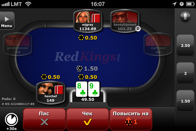 Приложение направлено на повышение активности в Strobe Poker, пользоваться им вполне удобно, хотя на первых порах непривычно. Можно использовать уже существующий аккаунт в комнате, либо через iOS устройство зарегистрировать новый. При регистрации нового аккаунта сайт Red Kings откроется в Safari, после чего нужно будет заполнить форму регистрации. Не забываем регистрироваться от Покерофф, для того чтобы вдальнейшем получить наш бонус $50+$50, а так же принять участие в рейк-гонке на $10,000.