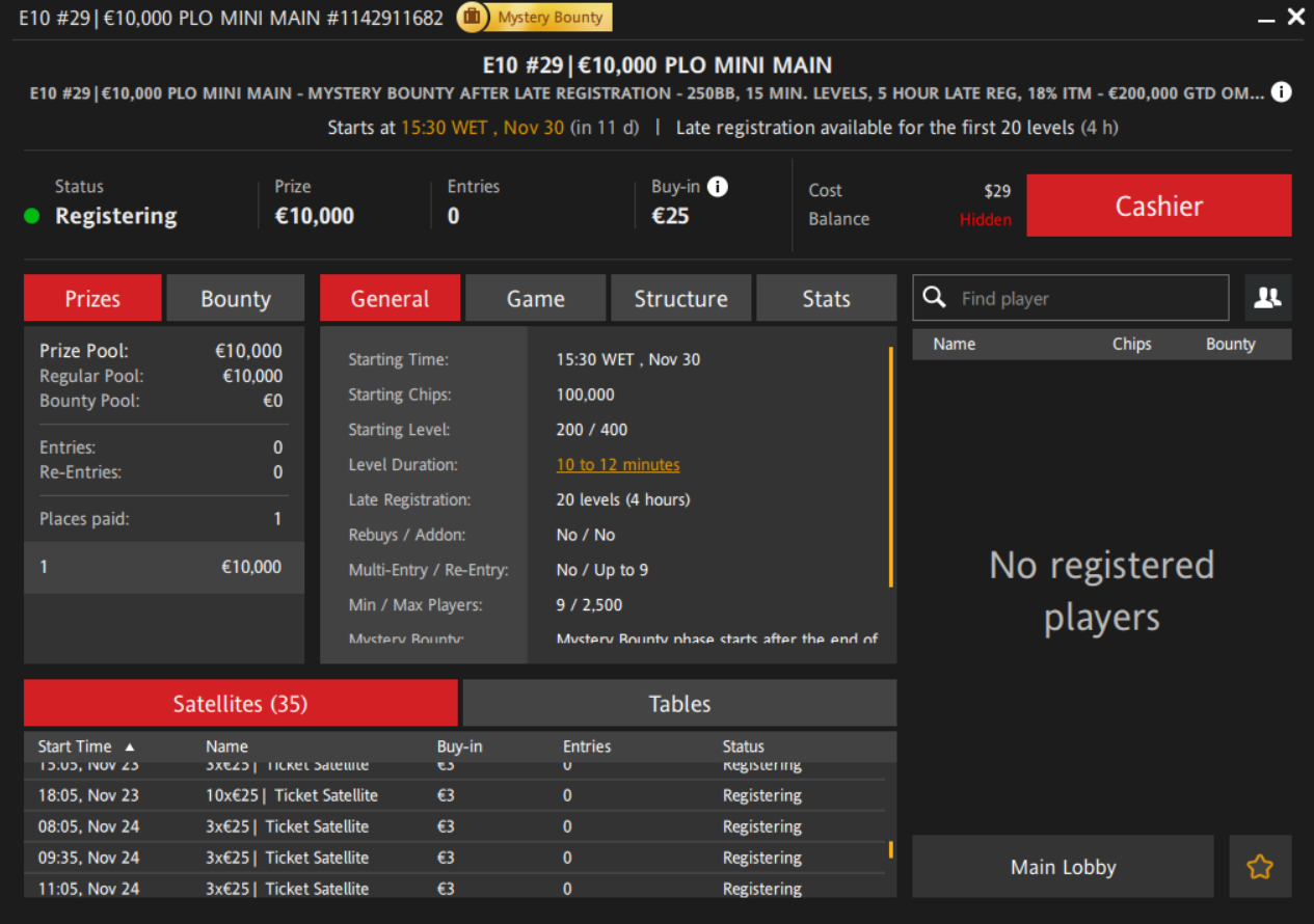 E10 #29 €10,000 PLO Mini Main с бай-ином €25