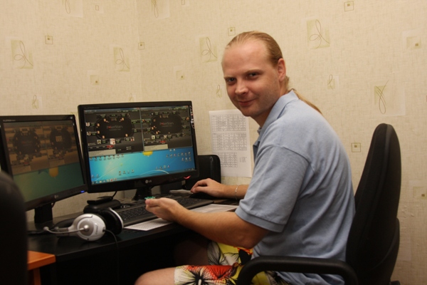 Мне 21, я из Старого Оскола, это в России, приехал сюда сразу после окончания университета, вместе с ребятами из Белгорода. Думаю, из карточных игр покер - самая нормальная, не назвал бы ее азартной. В моем понимании покер развивает человека. Киев встретил замечательно, проблем с адаптацией не было, коллектив дружный. Даже если бы мы здесь не играли в покер, все равно условия для саморазвития здесь очень хорошие. 180max по $4,50 играю, набиваю БР, чтобы перейти на турниры. Играю ли я в кэш? У нас никто в школе в кэш не играет, только МТТ и sit'n'go.