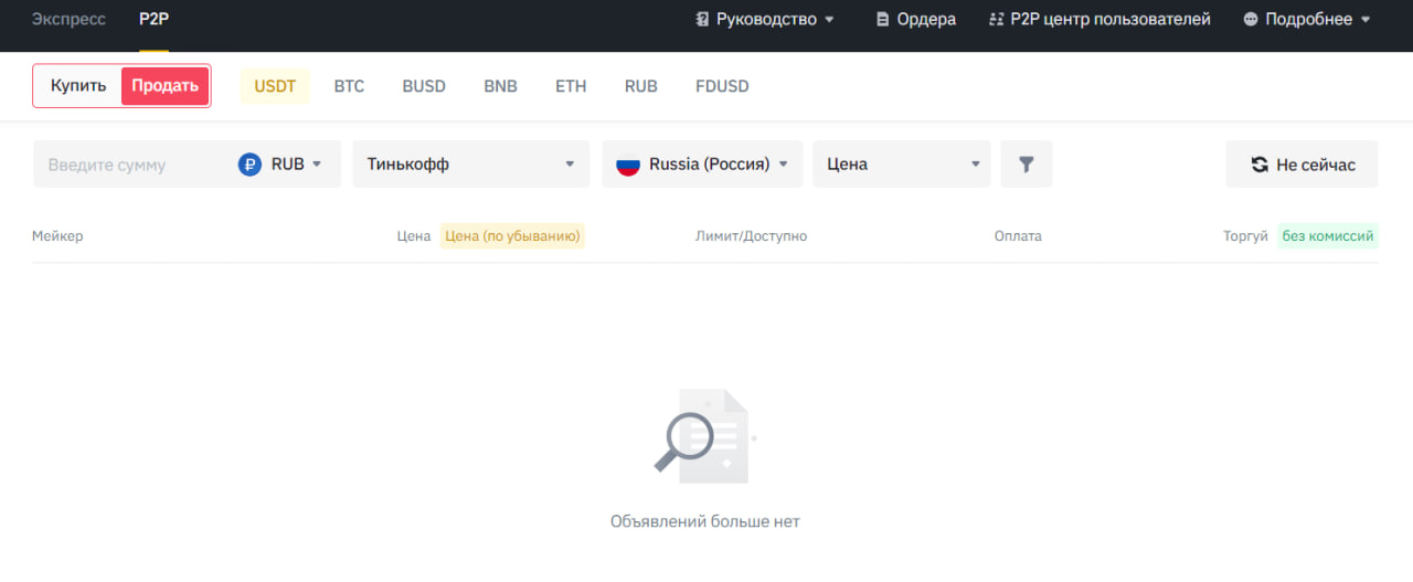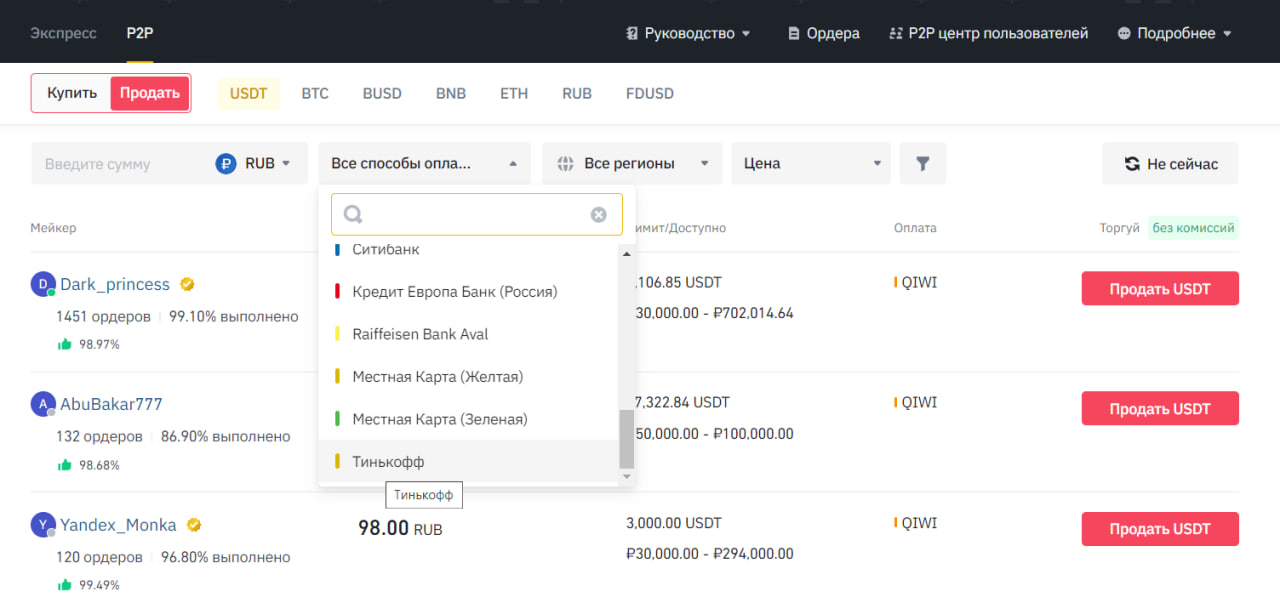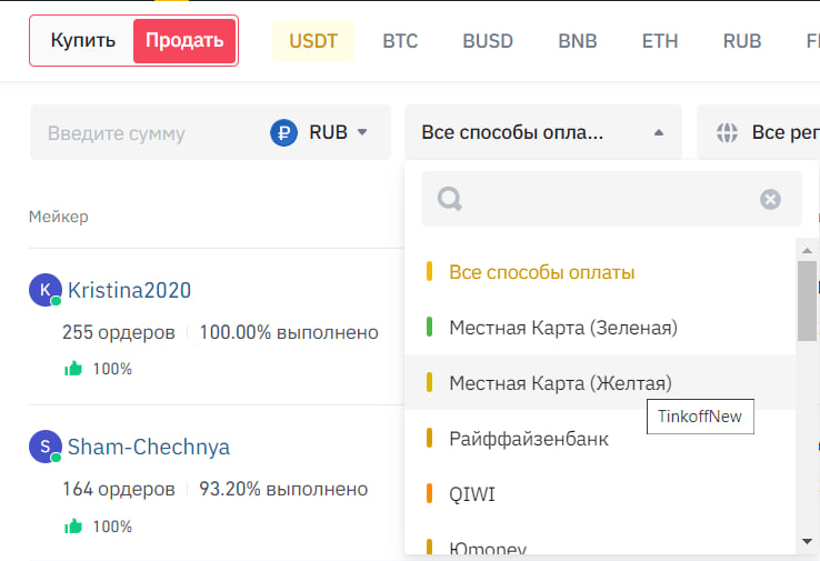 Вечером того же дня в фильтрах P2P вновь появился Тинькофф, однако ни по нему, ни по новым цветным картам не отображались объявления — даже если продавец или покупатель указали их у себя в описании.