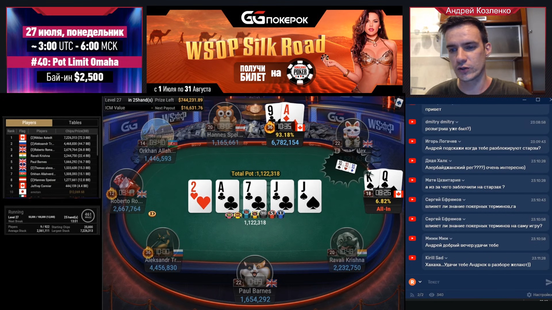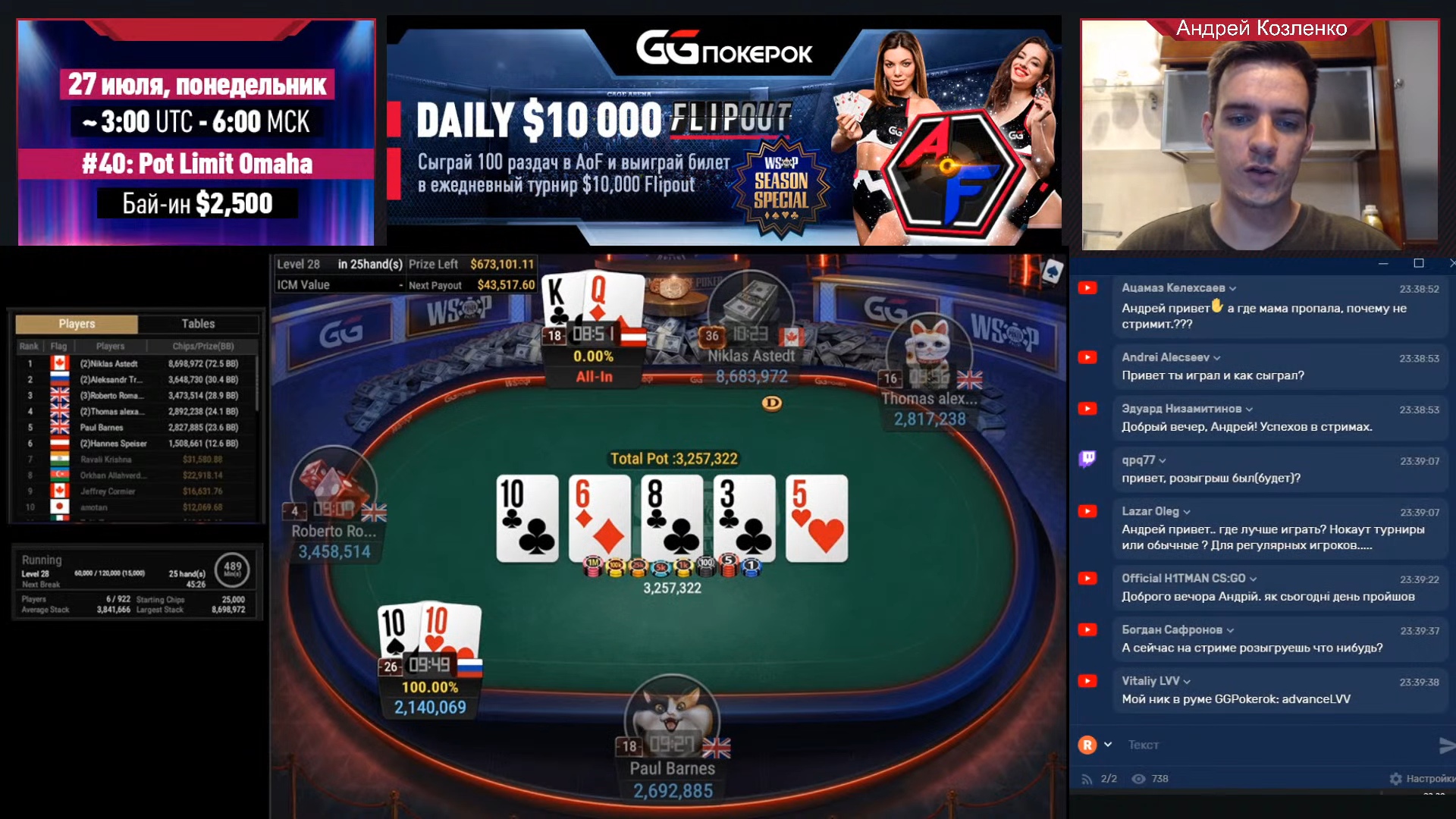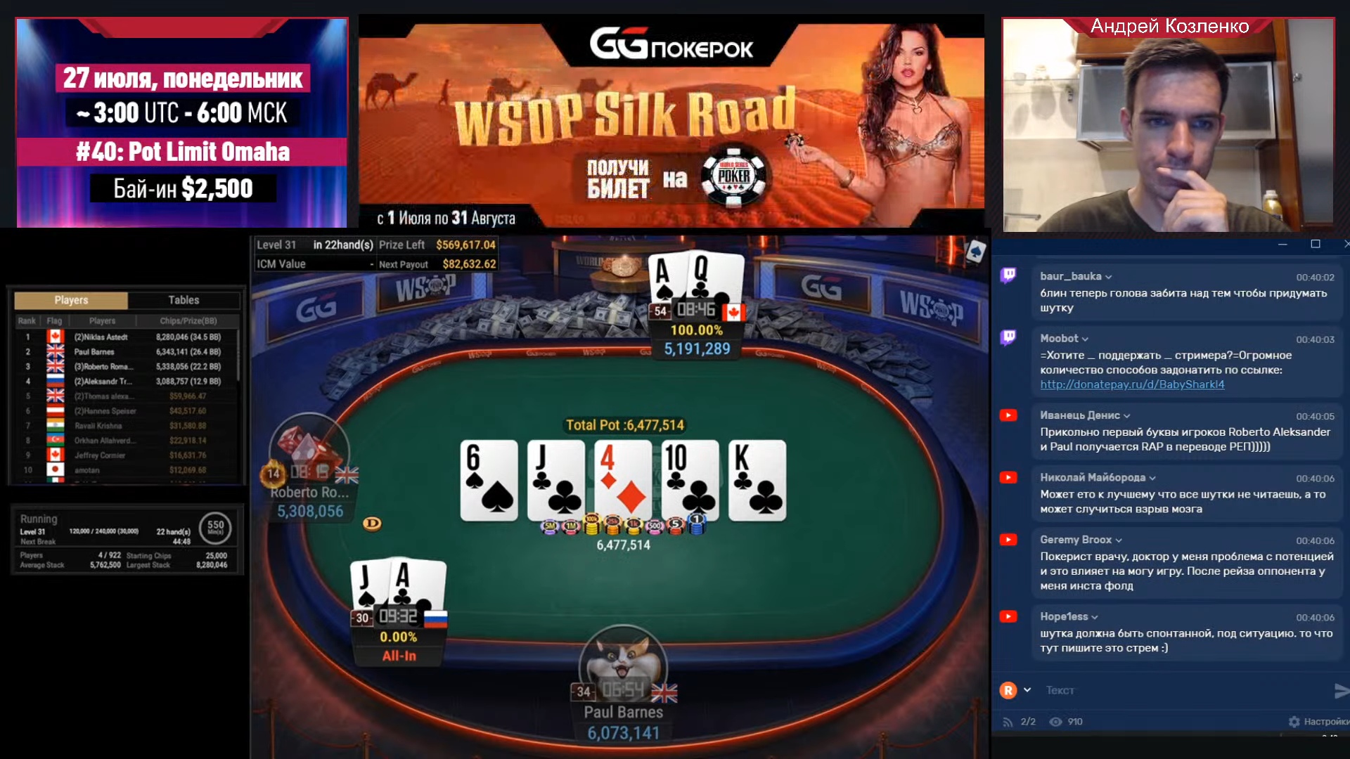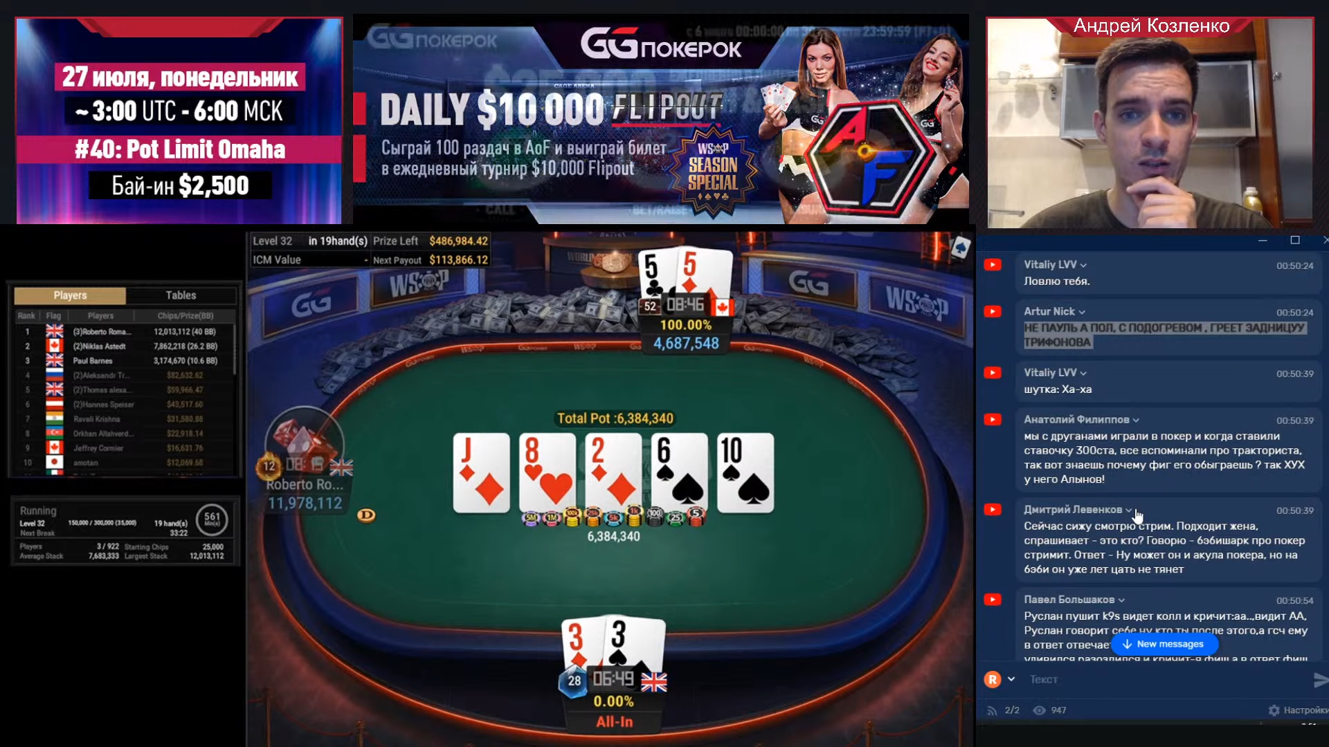 Игра за финальным столом транслировалась на канале стримера GGПОКЕРОК Андрея «babyshark4» Козленко, он же выступал в качестве комментатора.