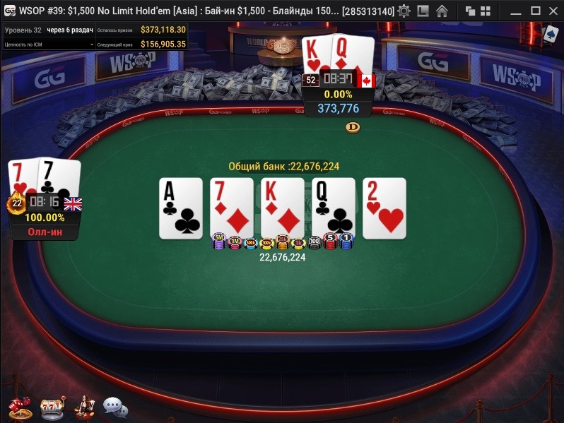 Довольно скоро после этого в практически идентичной ситуации с финальным столом попрощался и Равали Кришна — только он не смог устоять с AQo против Роберто Романелло с 77. Несмотря на такой исход, индус едва ли ушел недовольным — финалка WSOP была первой в его жизни и принесла ему $31.5K.