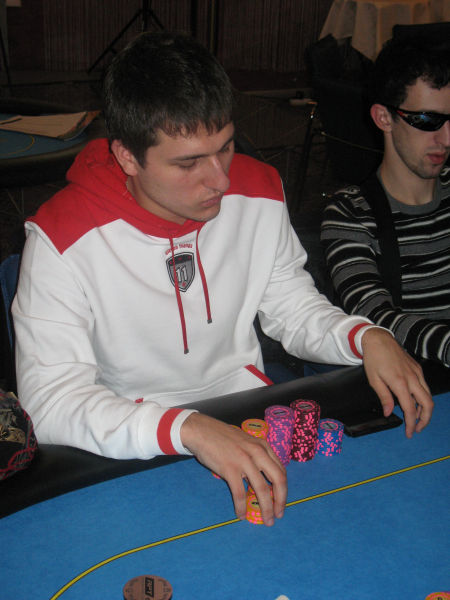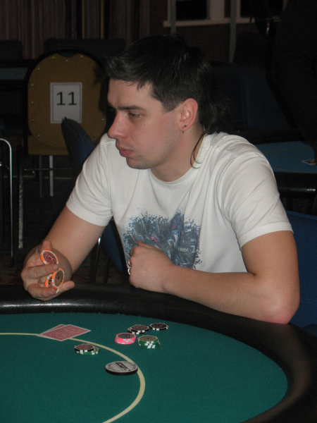 В самом начале турнирного дня большую часть стека потерял Евгений Зайцев - участие в розыгрыше против него принимал Вадим Курcевич, соперники выставились на флопе: